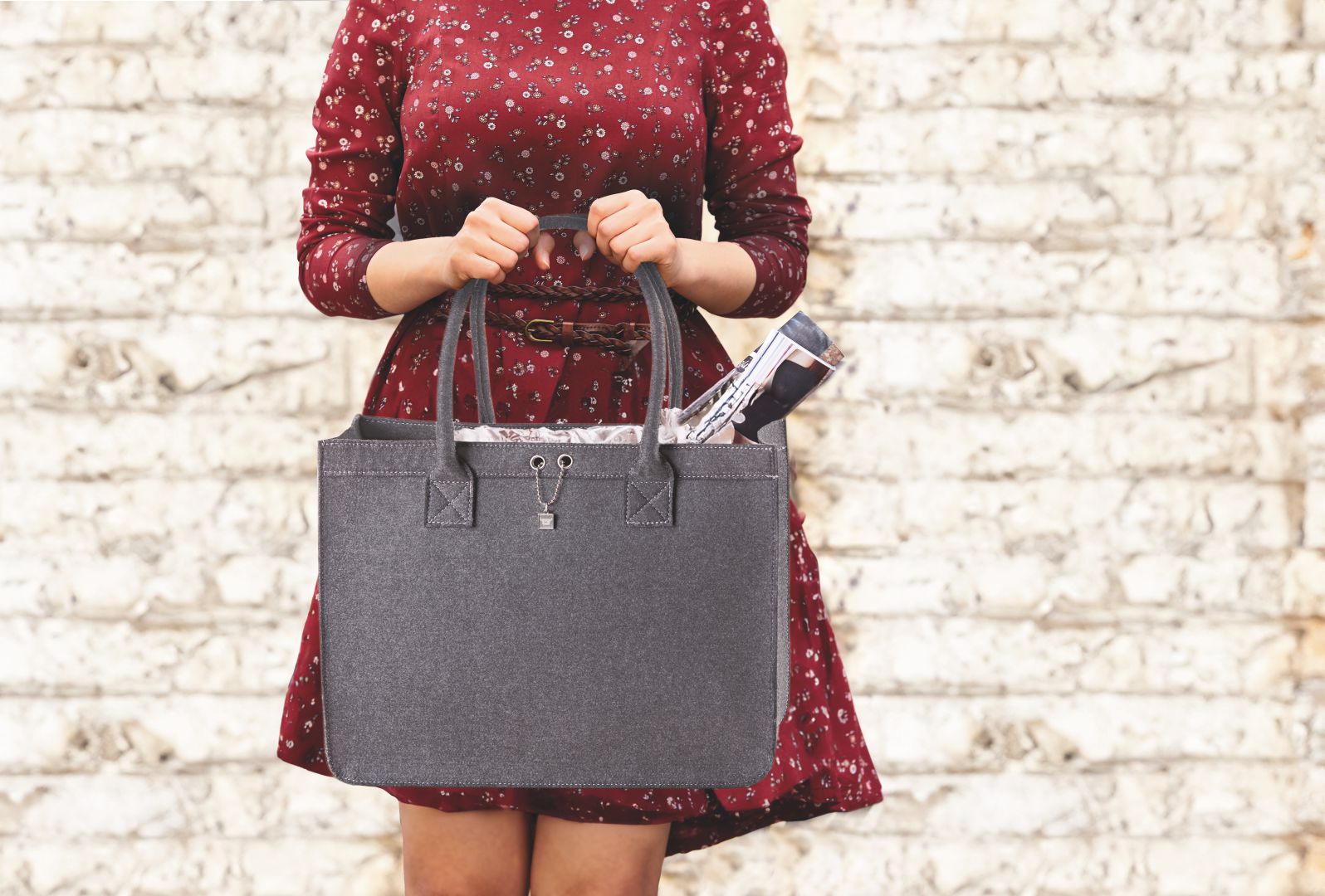 hochwertiger Filzshopper; innen abnehmbare, flache Wertsachen- Reißverschusstasche