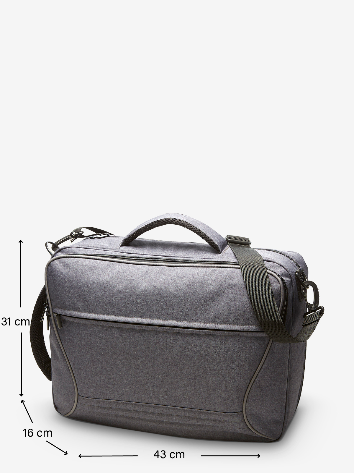 komfortable Businesstasche/Rucksack mit raffinierten Details; großes, gepolstertes Hauptfach mit Notebook-Halterung; Bodenfüße; Reißverschlussvortasche mit Organizer-Elementen; flache Reißverschluss-Vortasche; 2 gepolsterte Handgriffe; abnehmbarer und längenverstellbarer Schultergurt; gepolsterte und versenkbare Rucksackträger; höhenverstellbarer Brustgurt