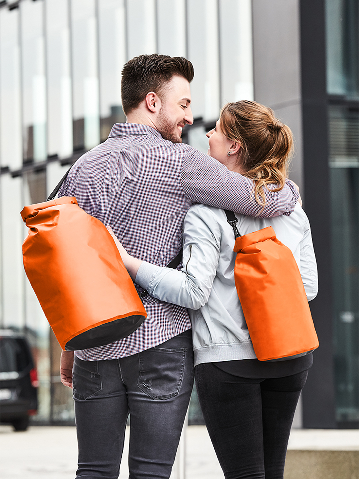 Ein Picknick an der Alster, eine Radtour zum Badesee oder ein Wochenende auf einem norddeutschen Festival: das alles meistert man ganz trocken mit der der Planentasche Drybag SPLASH. Dank wasserabweisendem Material, geschweißten Nähten und Rollverschluss muss man sich über den ein oder anderen Spritzer, manche Pfütze oder überraschende Regenschauer keine großen Gedanken mehr machen. Und auch der Coolness-Faktor dieser Tasche stimmt. Ideal als Werbeträger für Unternehmen aus Reisebranche, Outdoorbereich oder Stadtmarketing.