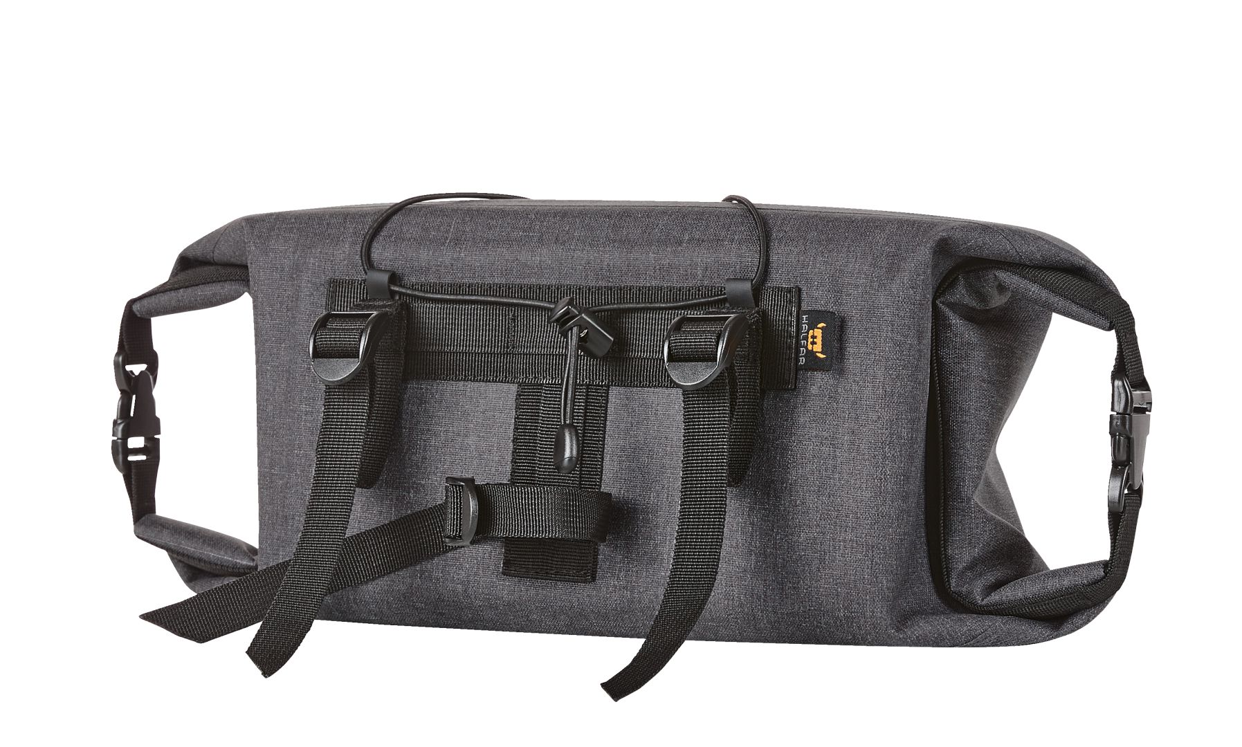 Hauptfach mit beidseitigem Rollverschluss, für schnellen Zugriff; Vorderseite mit Gummizug zum Verstauen von z.B. Jacke, Pullover etc.; Reißverschlussvortasche; geschweißte Nähte für zuverlässigen Schutz vor Regenwasser und Nässe; Vorrichtung zur Befestigung eines Reflektors oder Fahrradlichts; Gurtbandsystem zur Befestigung am Fahrradlenker