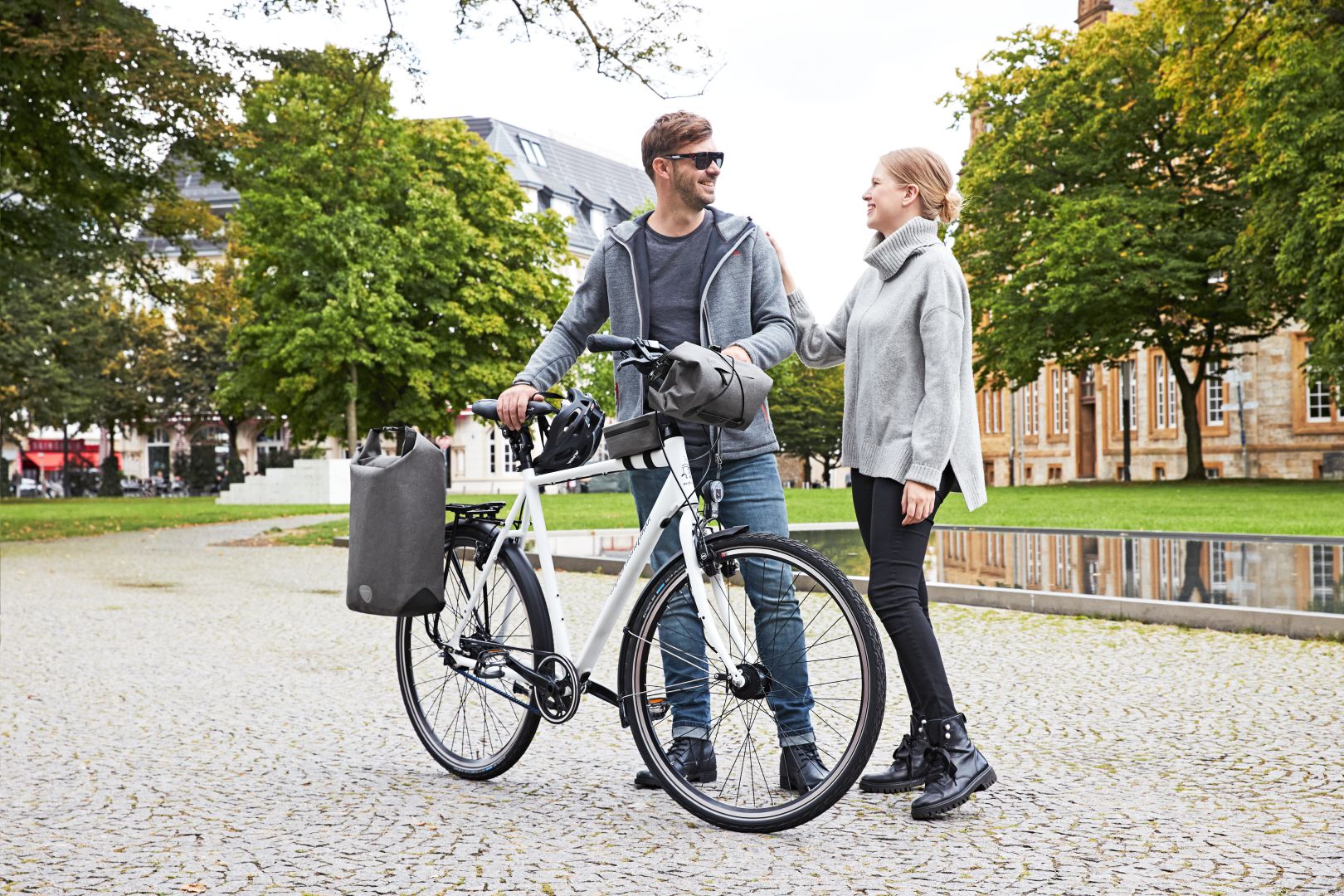 CYCLE ans Rad und los geht's. Mit dieser Fahrradtasche können Sie ganz entspannt die wichtigsten Fragen vor der Tour abhaken wie beispielweise: Wird es regnen? Egal, die Radtasche CYCLE ist mit Ihrem Rollverschluss und den verschweißten Nähten bei Schauern bestens geschützt. Kriege ich die Einkäufe noch mit? Klar! Die Tasche bietet ordentlich Stauraum – oder nehmen Sie gleich zwei mit, dann sind Sie selbst für kleine Radreisen top ausgestattet. Und passt die CYCLE überhaupt an mein Rad? Aber sicher. Alles, was Sie brauchen, ist ein herkömmlicher Gepäckträger. Das klickfix® Halterungssystem ist individuell einstellbar und per Drehriegel und zusätzlicher Klettlasche noch einmal gesichert. Für extra relaxtes Radeln.
