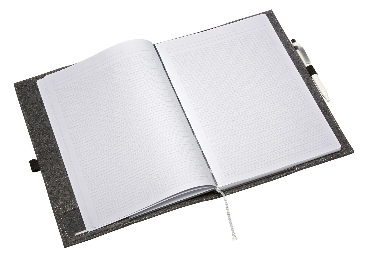 wertige Filzhülle geeignet für DIN A4-Notizbücher; Einsteckfächer; Stiftschlaufe zum Verschließen der Hülle