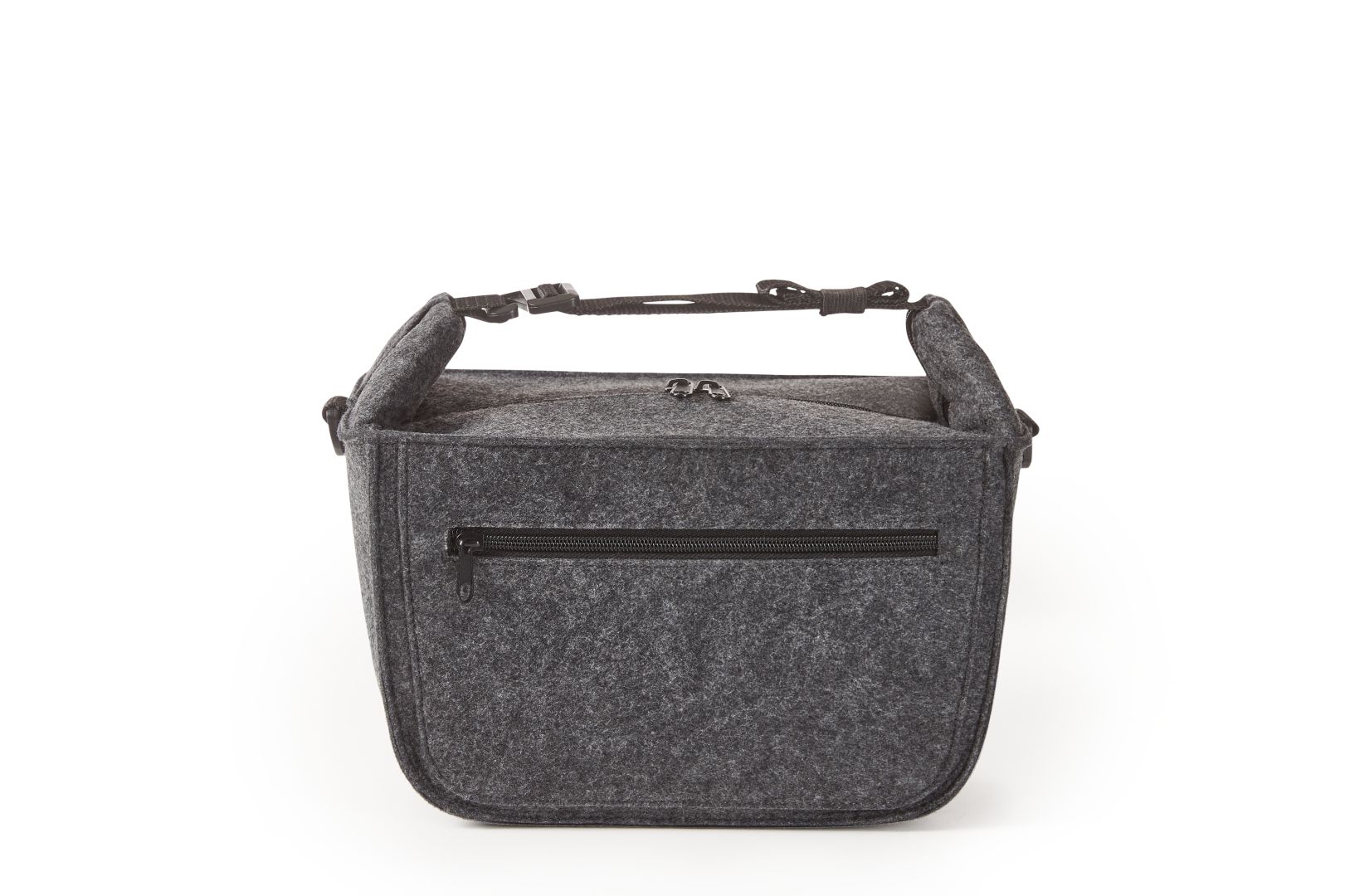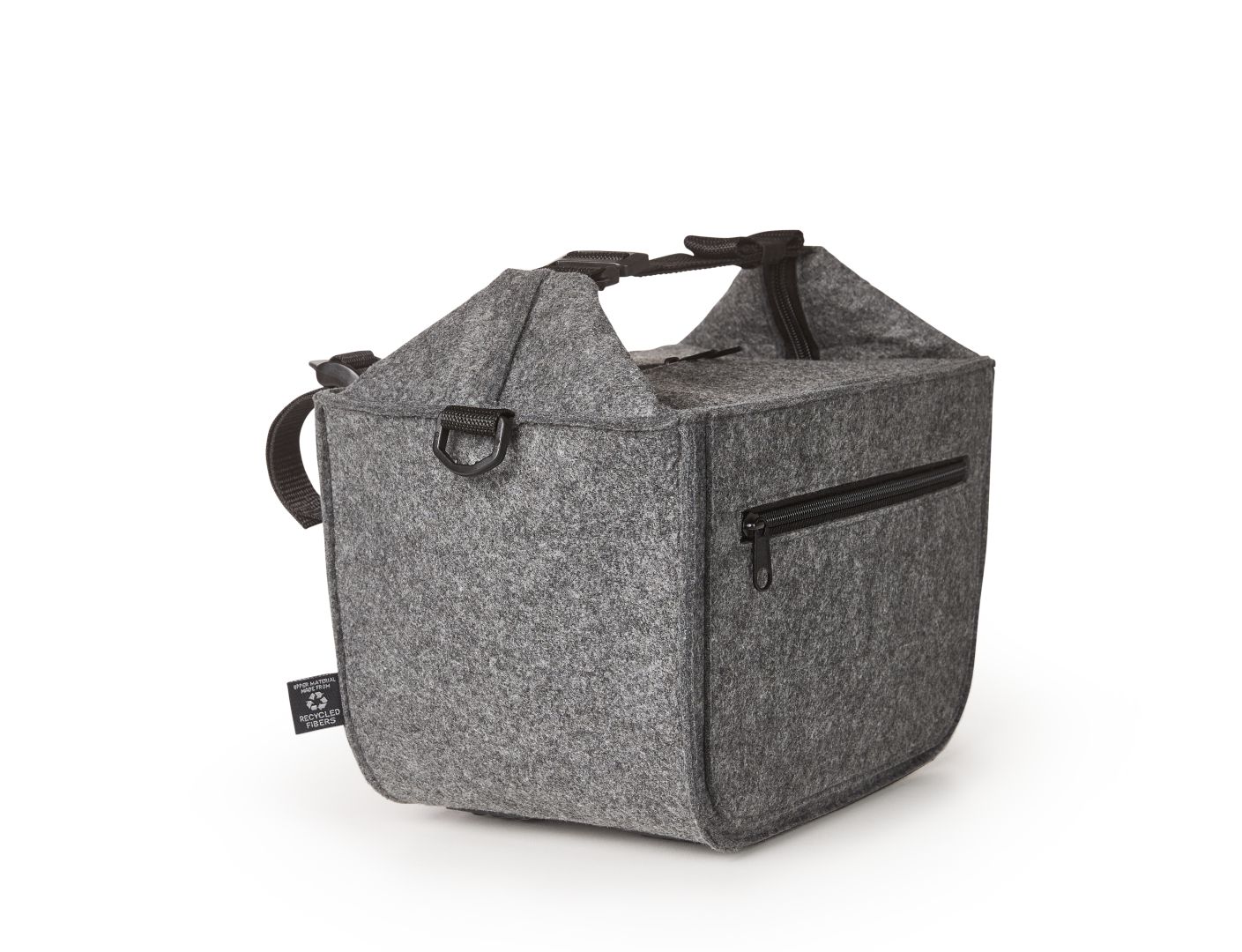 So warm war eine Kühltasche noch nie – zumindest, was die Haptik angeht. Innen hält die Filzlunchbag SOFTBASKET Snacks und Getränke frisch und kühl. Auf diese Weise tritt HALFAR® mit dieser Tasche ganz charmant den Beweis an, dass Nachhaltigkeit und Stil sehr gut mit praktischer Funktionalität und Outdoorkompetenz einhergehen. Denn diese Filzlunchbag ist außen aus dem Recyclingmaterial PES Filz gemacht, der sich wunderbar weich und griffig anfühlt und dabei stets standfest bleibt. In edlem Anthrazit macht er die Lunchbag zu einem klassischen Designobjekt – und das ausgesprochen zeitgemäß. Schließlich sorgt dieses Täschchen im Office-Alltag und in der Freizeit dafür, dass vorbereitete Snacks frisch mitkommen, statt unterwegs Einwegartikel zu kaufen – gelebte Nachhaltigkeit! Außerdem ist die kompakte Filzlunchbag dank eigener Befestigungsschlaufen fahrradlenkerfreundlich und lässt sich als Schulter- oder Handtasche tragen.
