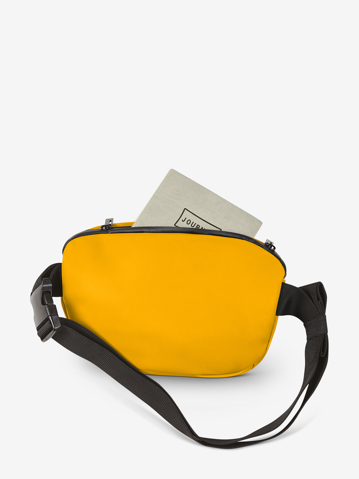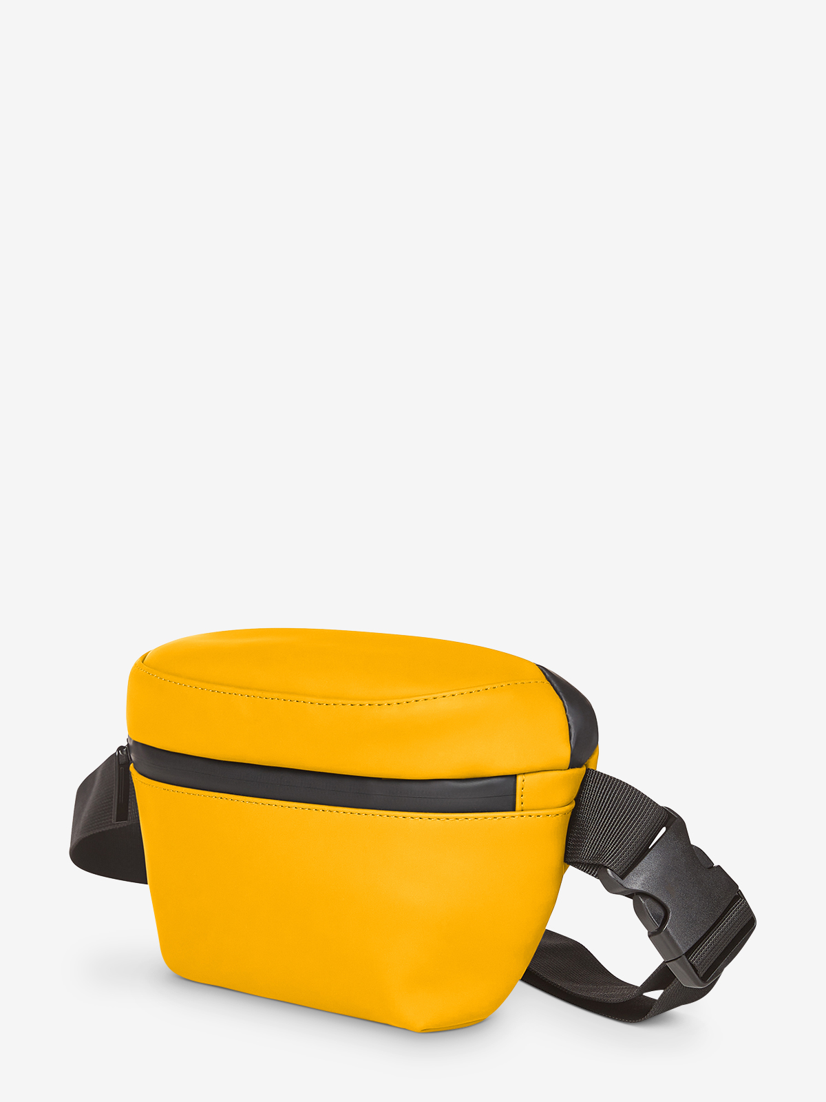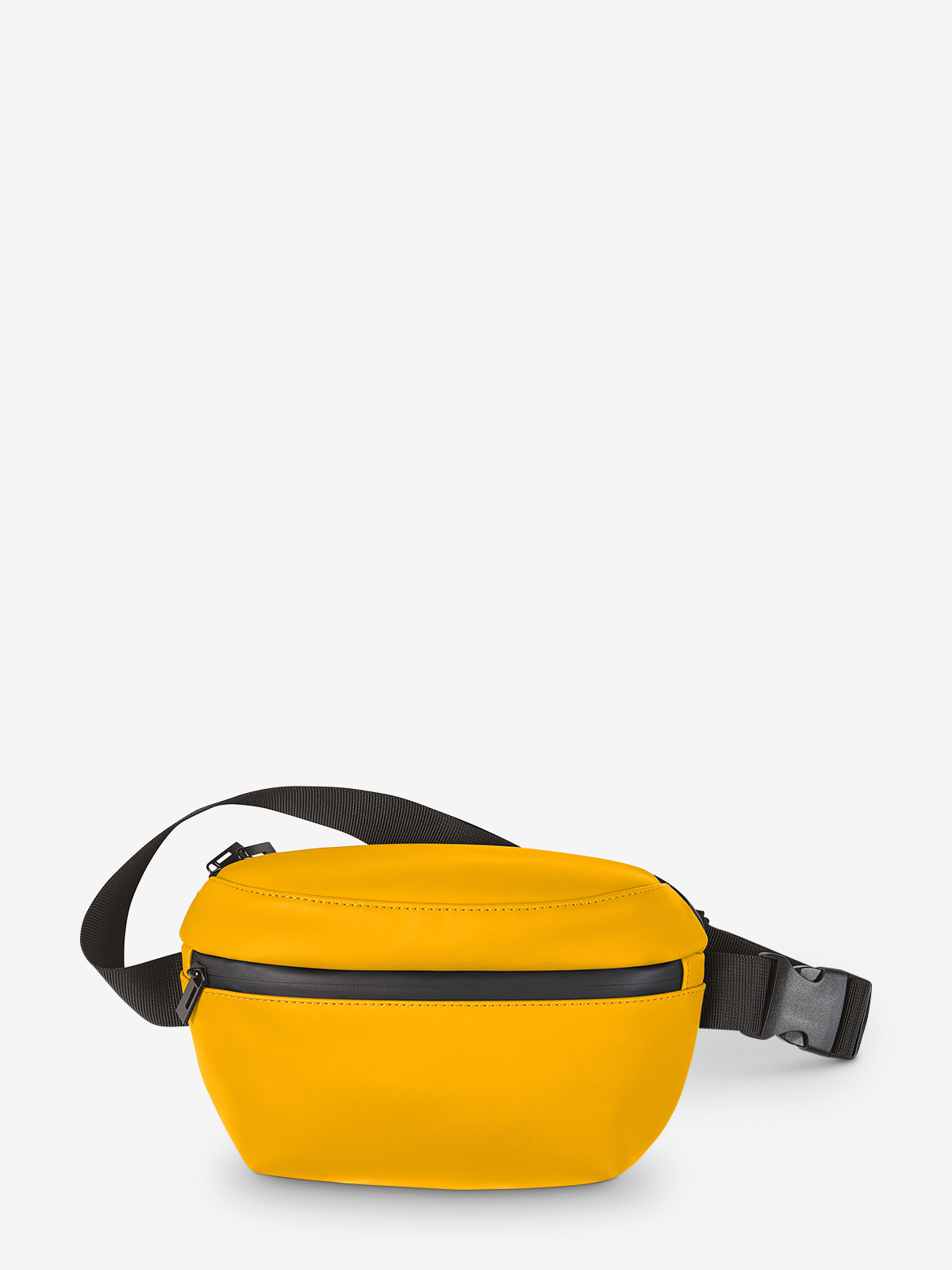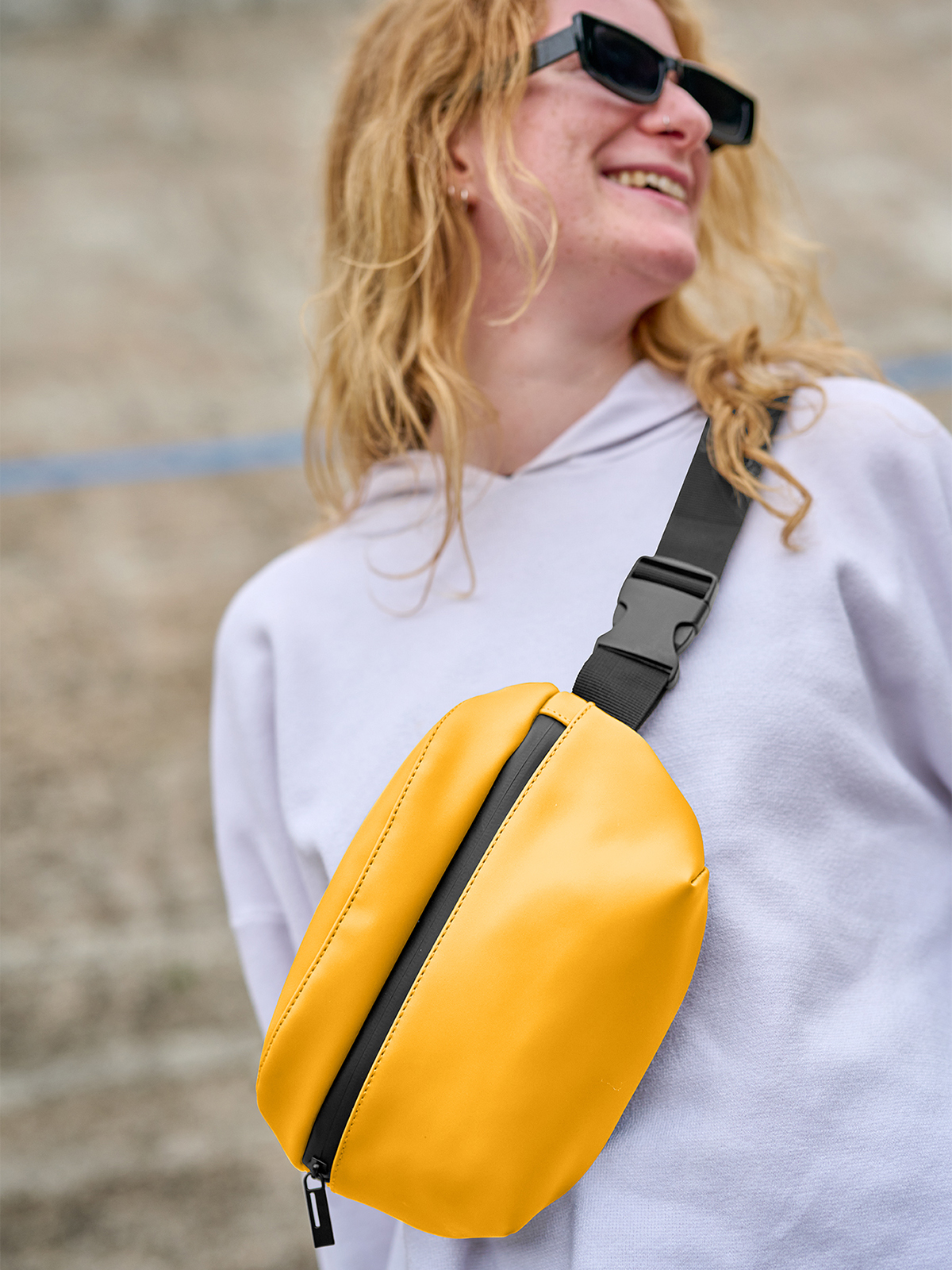 moderne Bauchtasche; Hauptfach mit 2-Wege-Reißverschluss und flachem Einsteckfach innen; wasserabweisende Reißverschlüsse; Reißverschluss-Vortasche; längenverstellbarer Gurt mit Gummilasche zur Gurtfixierung; als Hüft- oder Body-Bag tragbar; große Schnalle seitlich für komfortables Öffnen und Schließen