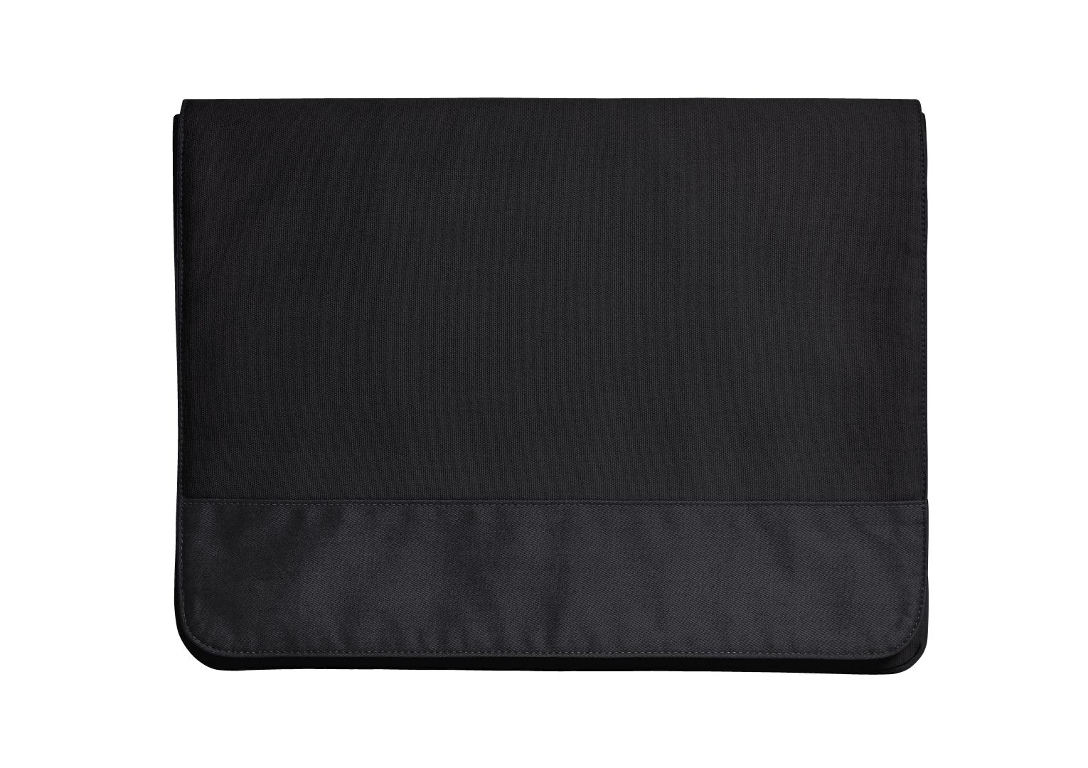 moderne, aufwändig verarbeitete Notebook-Hülle; liebevoll gestaltet mit beschichtetem Baumwoll-Besatz; geeignet für Notebook und DIN A4-Unterlagen; zwei flache Einsteckfächer auf der Front; Reißverschluss-Fach im Überschlag innen; großes Reißverschluss-Fach rückseitig; Magnet-Verschluss