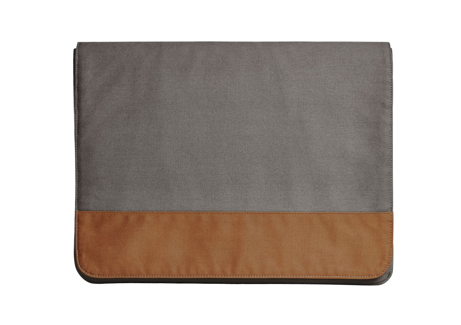 moderne, aufwändig verarbeitete Notebook-Hülle; liebevoll gestaltet mit beschichtetem Baumwoll-Besatz; geeignet für Notebook und DIN A4-Unterlagen; zwei flache Einsteckfächer auf der Front; Reißverschluss-Fach im Überschlag innen; großes Reißverschluss-Fach rückseitig; Magnet-Verschluss