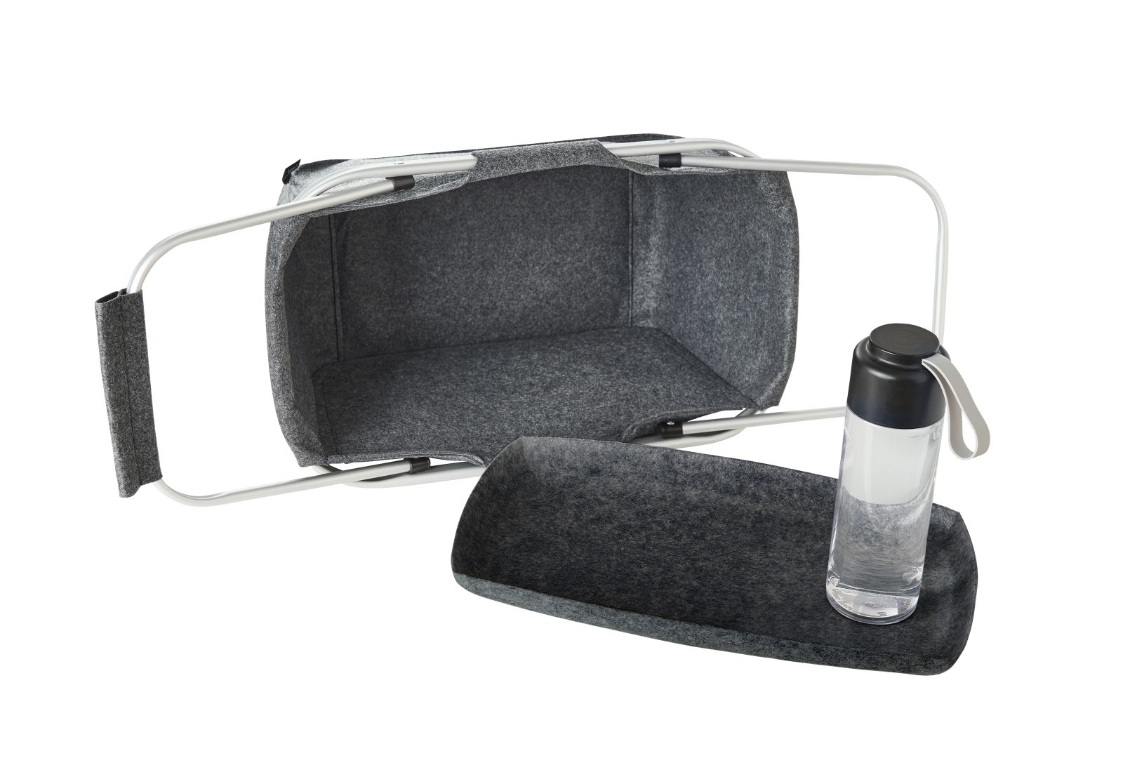 Fast leere Pfandflaschen, saftiges Obst, sandiges Gemüse, feucht-frostige Pizzakartons – das alles hinterlässt im Einkaufskorb über die Zeit so seine Spuren. Besser, der Boden ist geschützt. Für den HALFAR® BASKET und SOFTBASKET gibt es deshalb diesen passenden Einsatz aus recyceltem PES-Filz. Ein robustes und ebenso praktisches Material. Dieses Inlay schont, schützt und ist abwischbar. Mehr noch: der hohe Rand fängt Tropfwasser sicher auf. So bleibt der Einkaufskorb selbst lange schön und noch länger in Gebrauch. Für eine glückliche Einkaufs-Beziehung!