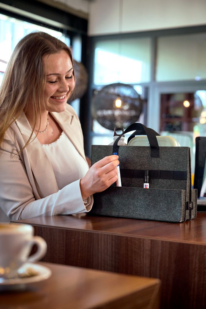 Entscheiden Sie selbst. Sicher ist, dass dieser Mega-Organizer als Solitär und auch als Inlay für unsere Filz-Organizer für pure Begeisterung sorgt. Und das bei wirklich allen, denen wir es präsentiert haben. Die Tüftlerin? Begeistert vom Stauraum für Kleinwerkzeug und den Ablagen mit Tiefe und individuell einstellbaren Fächern. Der Zeichner? Liebt die praktischen, elastischen Fixierschlaufen für Stift und Co und die Handgriffe, um es überallhin mitzunehmen. Der Home-Office-Worker? Transportiert alles Wichtige von Notizzettel bis Ladekabel vom Schreibtisch zu Hause gut sortiert und geordnet mit einem Griff ins Büro. Und bestimmt denken Sie jetzt auch schon:„Also, das könnte ich auch gut gebrauchen.“