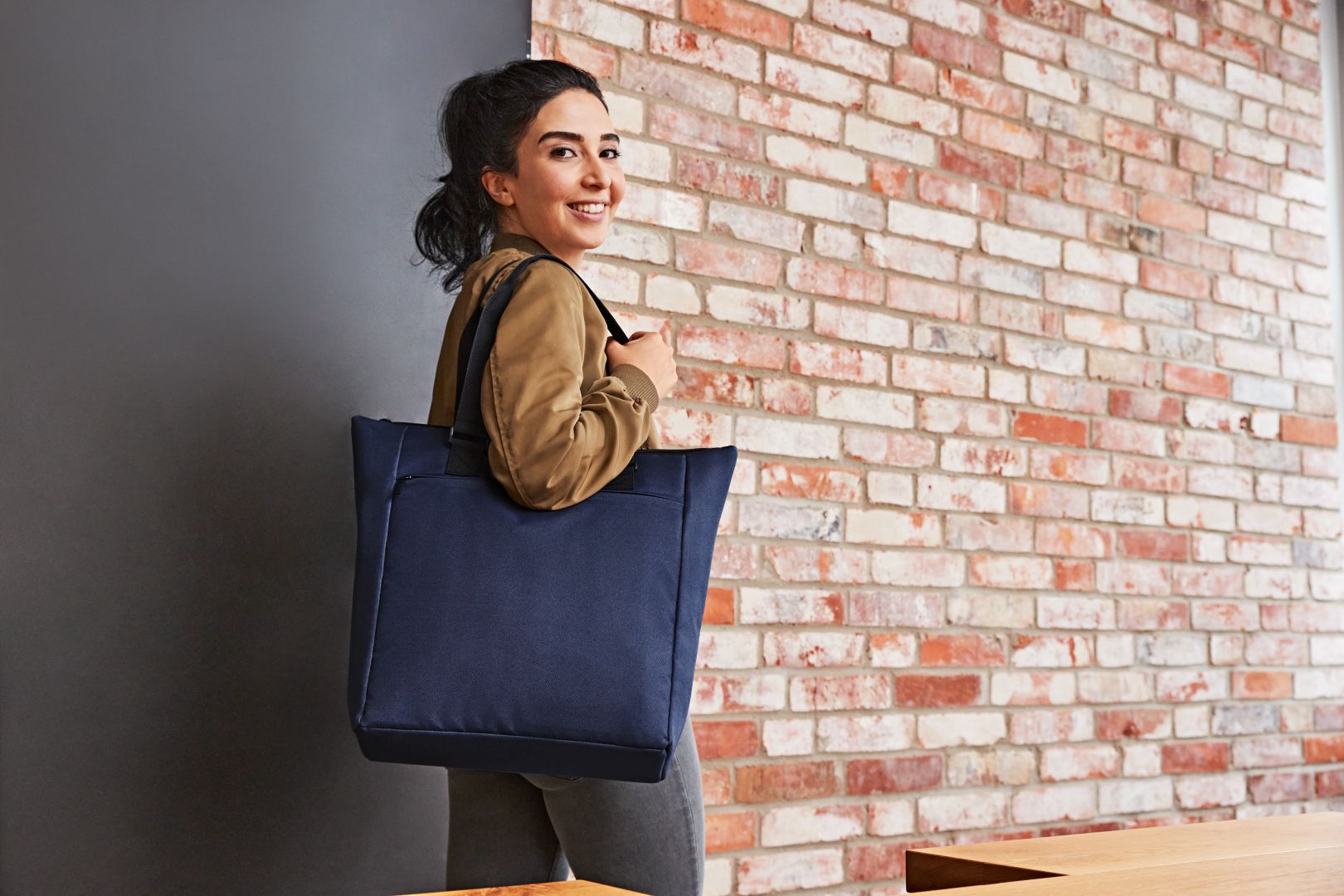 großer Kühlshopper; RPET-Obermaterial; wertig gepolstertes Reißverschluss-Hauptfach innen abwaschbar; große Reißverschluss-Vortasche; Handgriffe mit dekorativer Schnalle