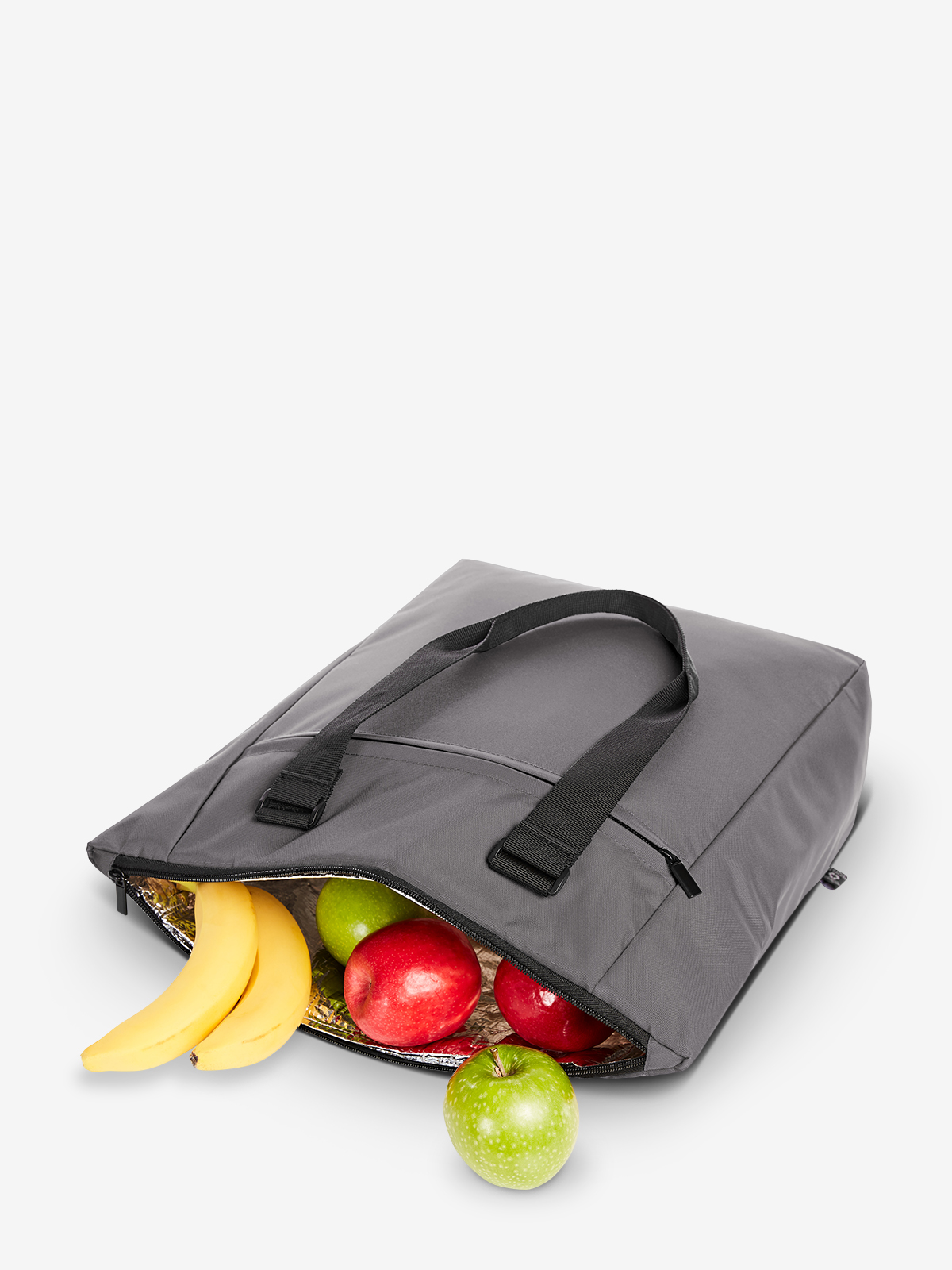 großer Kühlshopper; RPET-Obermaterial; wertig gepolstertes Reißverschluss-Hauptfach innen abwaschbar; große Reißverschluss-Vortasche; Handgriffe mit dekorativer Schnalle