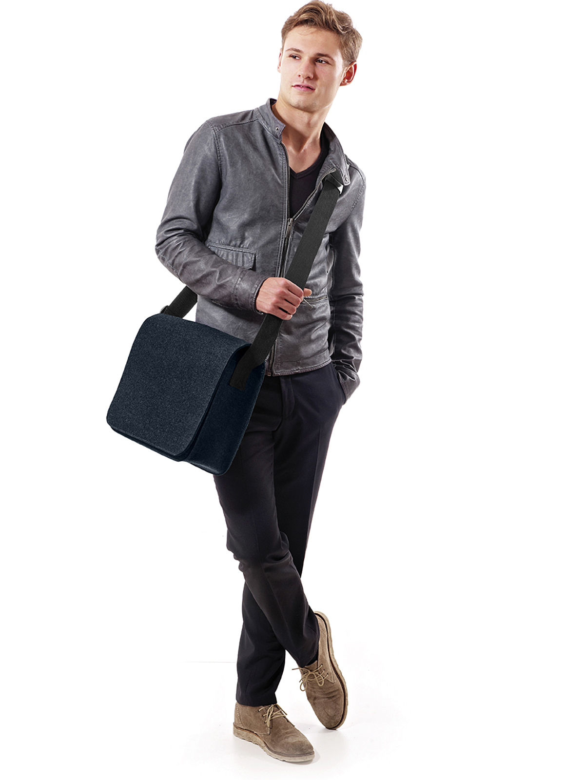 Lassen Sie diese Tasche auf sich wirken. Das elegante und ausdrucksstarke Material Filz. Die Geradlinigkeit der Form. Die Sportlichkeit der klassischen Kuriertasche. Die legeren breiten Baumwollgurte. Und dann stellen Sie sich Ihr Logo darauf vor. Edel gestickt entfaltet es auf dem großen Überschlag seine ganze Wirkung. Sie sehen es schon vor sich? Dann freuen wir uns darauf, es wahr zu machen.