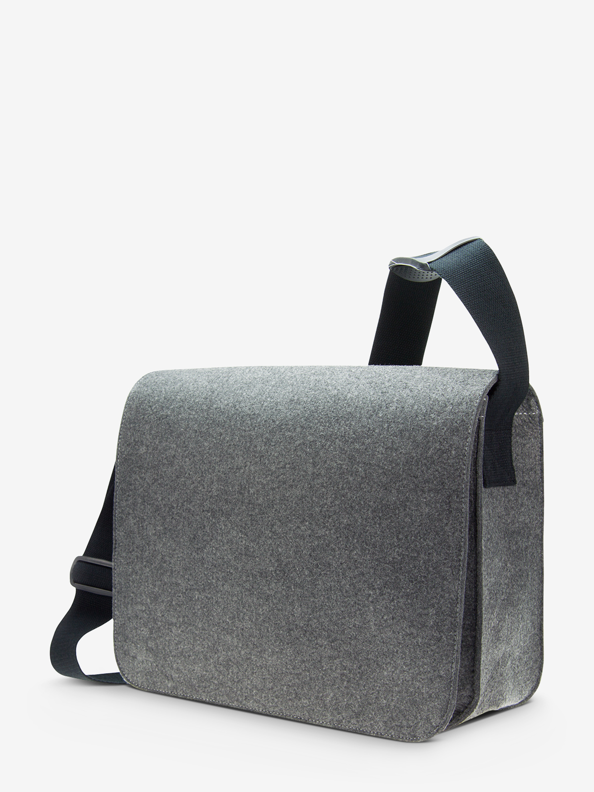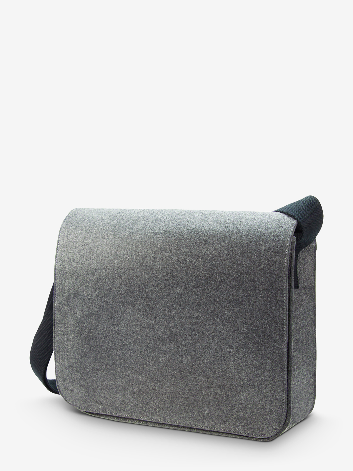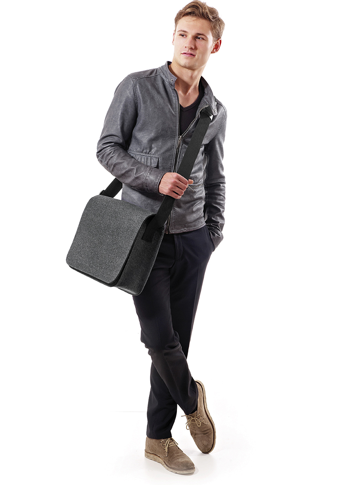 Lassen Sie diese Tasche auf sich wirken. Das elegante und ausdrucksstarke Material Filz. Die Geradlinigkeit der Form. Die Sportlichkeit der klassischen Kuriertasche. Die legeren breiten Baumwollgurte. Und dann stellen Sie sich Ihr Logo darauf vor. Edel gestickt entfaltet es auf dem großen Überschlag seine ganze Wirkung. Sie sehen es schon vor sich? Dann freuen wir uns darauf, es wahr zu machen.