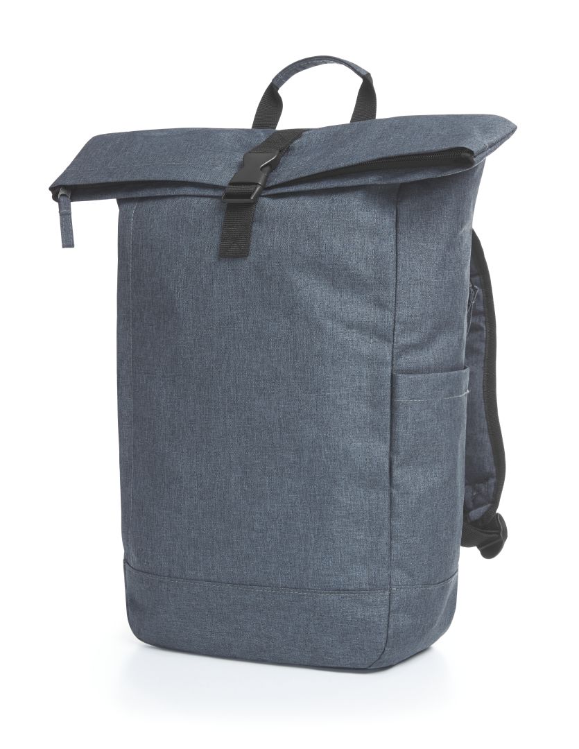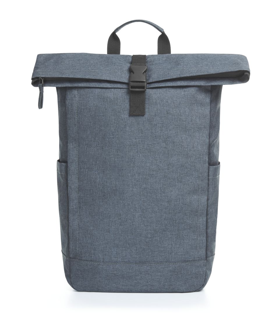 urbaner Rucksack mit Reißverschluss-Hauptfach und Steckverschluss; rPET-Obermaterial; gepolstertes Einsteckfach und Organizer-Elemente innen; seitliche Reißverschluss-Vortasche; zwei seitliche Einsteckfächer für z.B. Trinkflaschen; rückseitige Reißverschluss-Tasche; gepolstertes Tragesystem; Handgriff