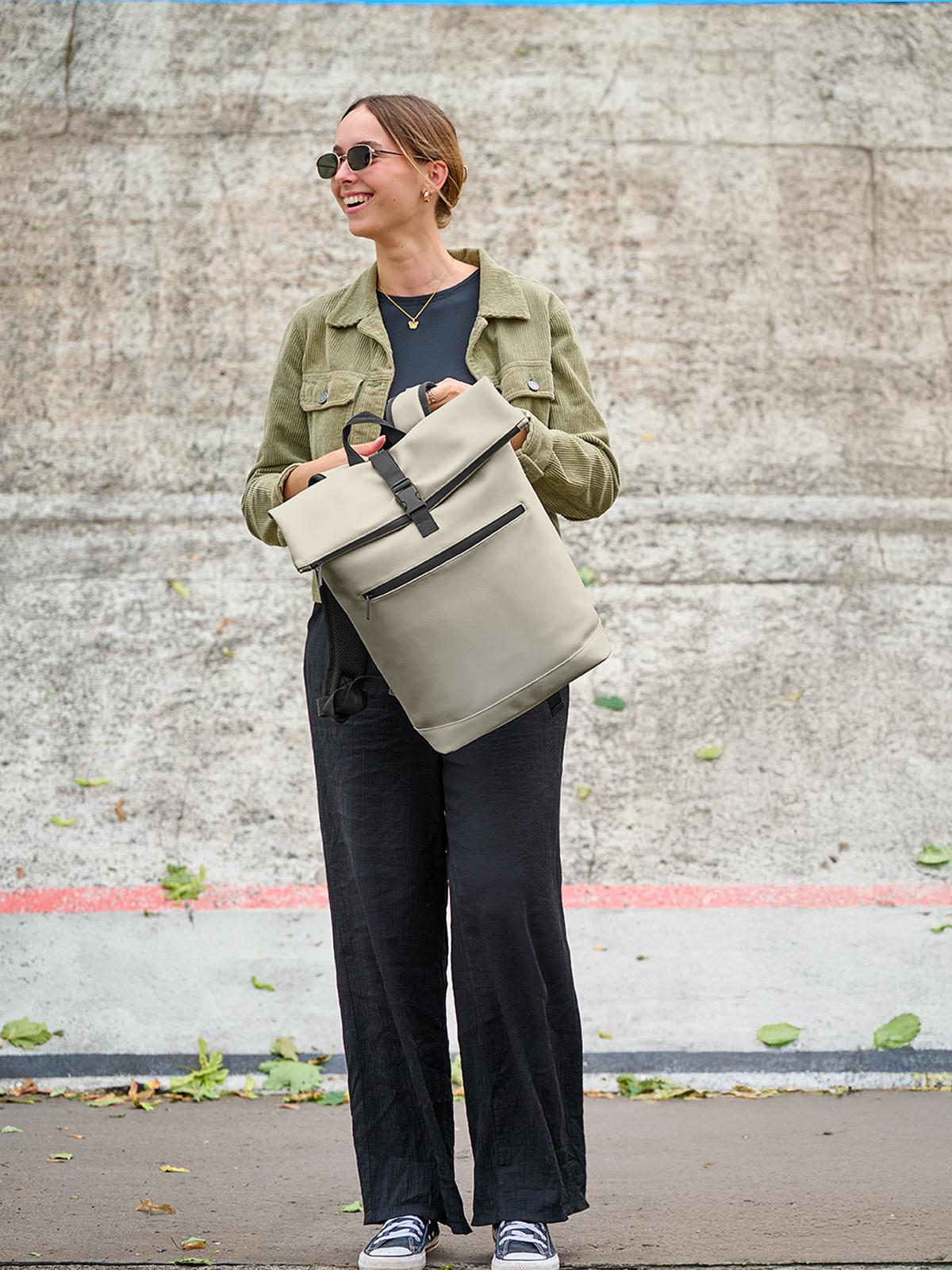 schicker, urbaner Rucksack;Hauptfach mit verstärktemBoden;wasserabweisende Reißverschlüsse;gepolstertes Notebookfach mit Gummilasche; flaches Reißverschlussfach; Reißverschluss-Vortasche; gepolstertes Tragesystem;Handgriff