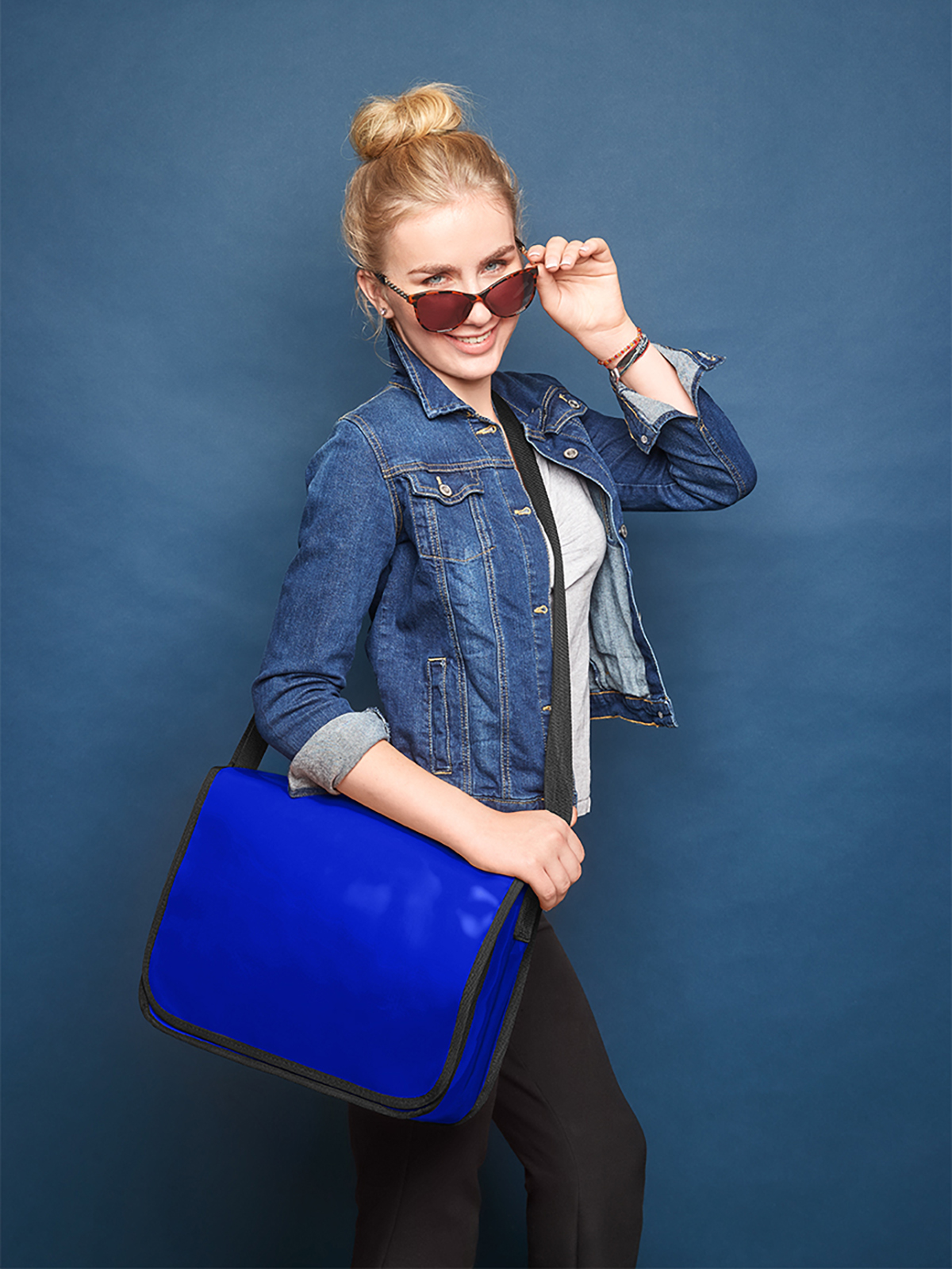 Hauptfach mit Organizer-Elementen; flaches Einsteckfach innen; bequemer Schultergurt; großer Überschlag mit Klettverschluss als ideale Druckfläche für Ihre Promotion