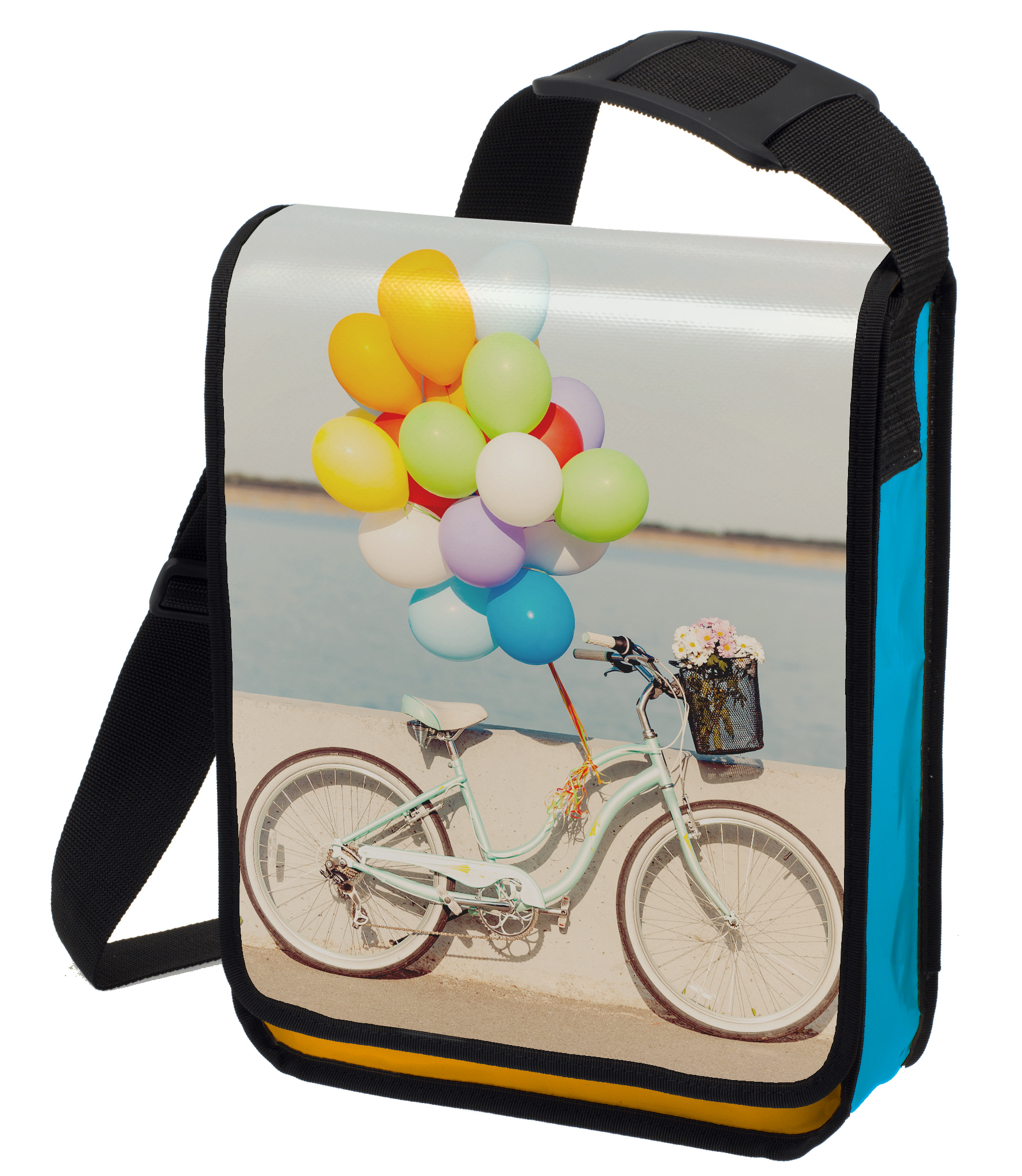 Hauptfach mit Überschlag; Klettverschluss; längenverstellbarer Schultergurt mit Rutschsicherung