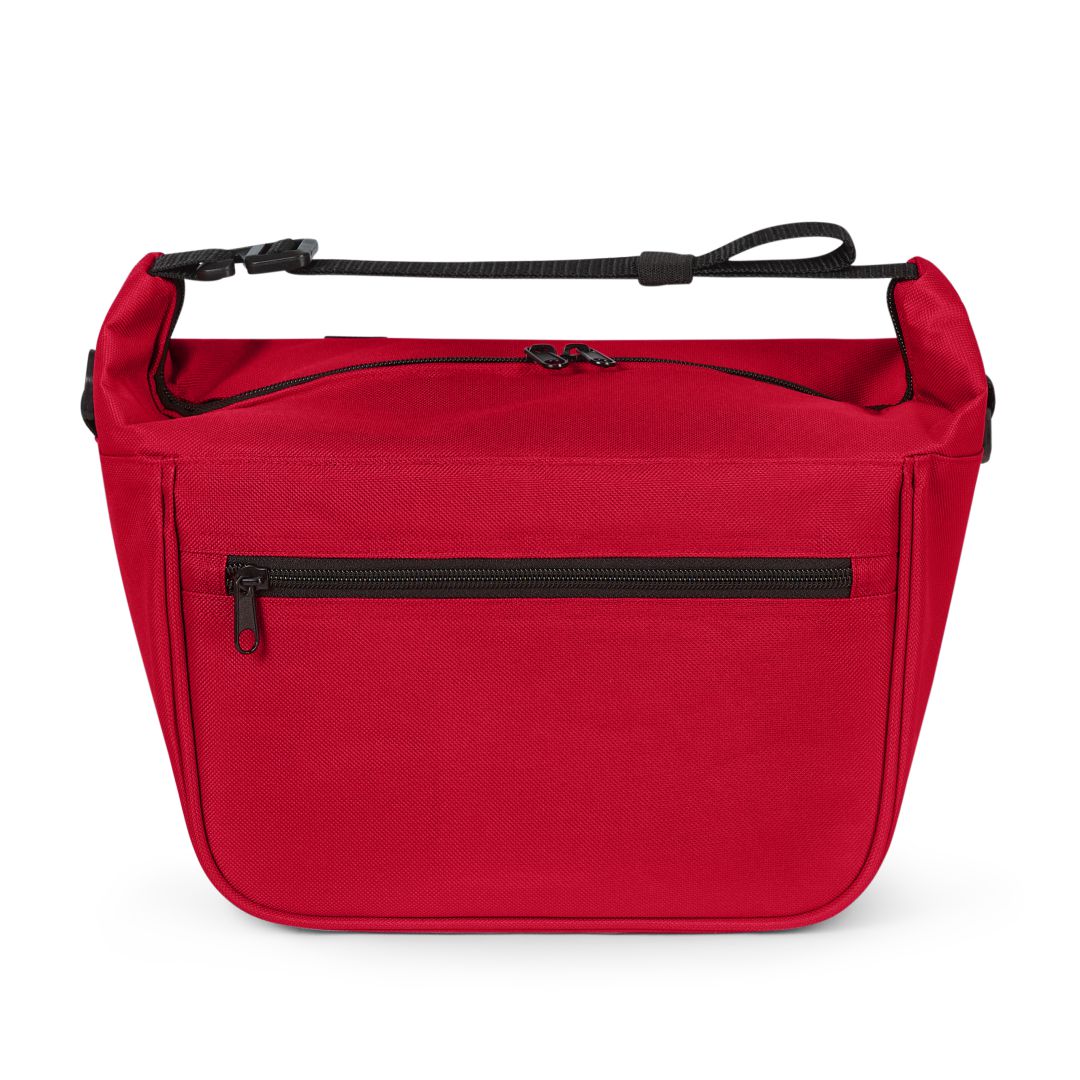 moderne Kühltasche; Hauptfach mit 2-Wege-Reißverschluss; großzügige Polsterung; innen abwaschbar; einseitig lösbarer, längenverstellbarer Träger mit Gummilasche zur Gurtfixierung; beidseitig D-Ringe zu Befestigung z.B.: für optionalen Schultergurt* oder Schlüssel;Bodenfüße; rückseitig Schlaufen zur Befestigung am Fahrradlenker *Nicht im Leistungsumfang enthalten