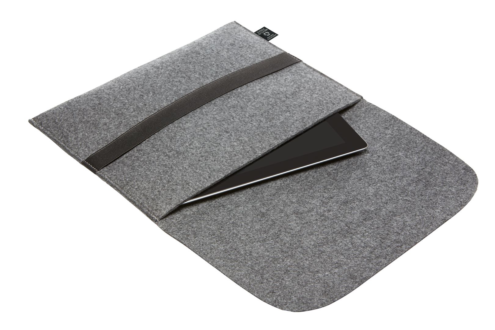 wertige Filzhülle geeignet für DIN A4-Notizbücher und Tablets; elastisches Band zum Verschließen der Hülle