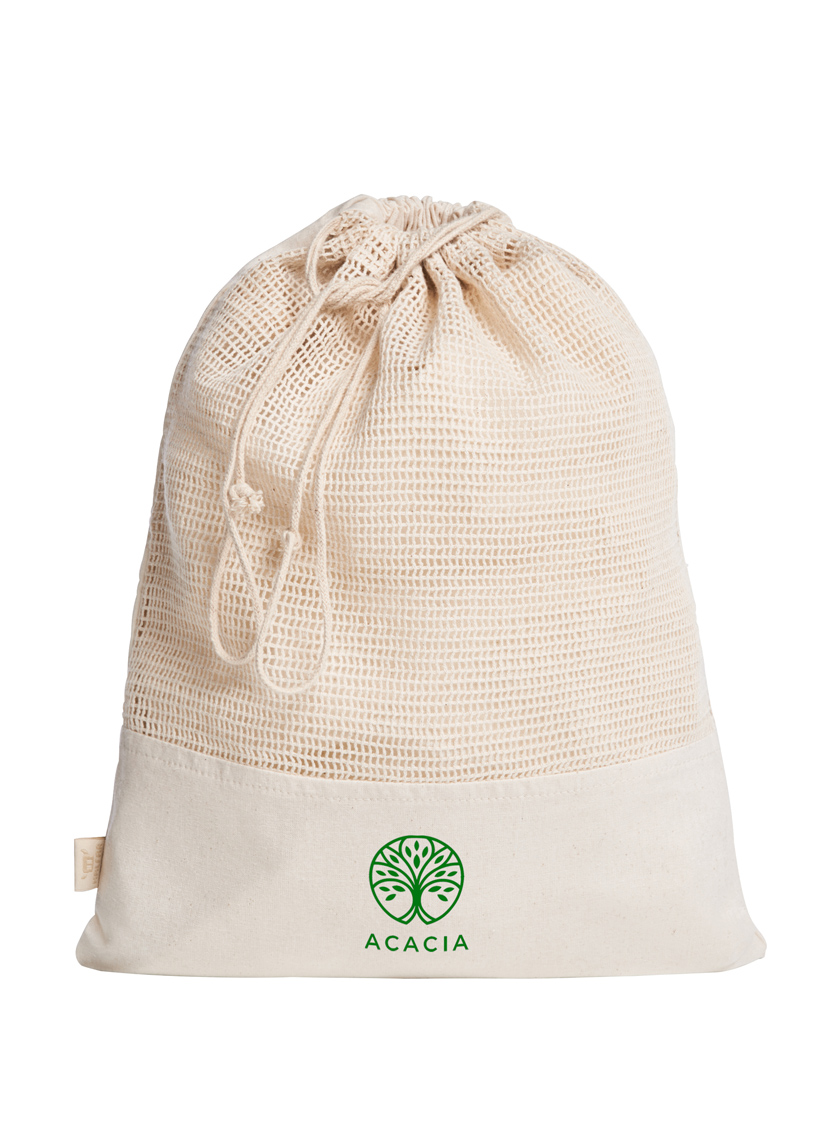 Die Tasche mit Netz und starkem Boden ist ein echter Alleskönner. Sie ist die nachhaltige Alternative zu Plastik beim Gemüse- oder Brotkauf. Sie ist die durchsichtige Ordnungshelferin im Haushalt. Sie ist die belüftete Tasche für Wäsche auf Reisen. Und vor allem ist sie ein vielseitiges Werbemittel aus 100 % Bio-Baumwolle. Das alles macht den ORGANIC Mehrwegbeutel eigentlich alternativlos. Wer sich jetzt aber nicht allein auf schöne Worte verlassen will, kann sich auch einmal den klaren Zeichen widmen: von lebensmittelecht über PVC-frei bis zu mini-money reichen unsere Auszeichnungen. Und zu veredeln ist der Mehrwegbeutel auf Vorder- und Rückseite natürlich auch.