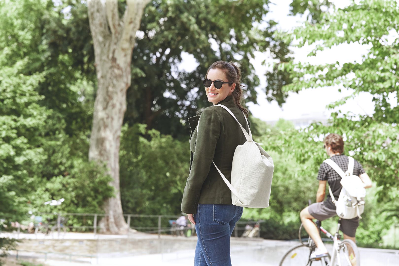 So multi diese Tasche auch ist, so clean und pur sieht sie aus. Das liegt vor allem am wunderbar griffigen Baumwollmix in natürlichem Sandton, der die Multibag LOOM strahlen lässt. Hinzu kommt die interessante Verschlusslösung: umlaufende Gurte, die viele Freiheiten geben. Sie werden zu Schultergurten oder Handgriffen für eine Umhängetasche. Sie machen die Tasche zum Rucksack oder – oben kräftig zusammengezurrt – zum Beutel. Sicher ist: Ein Reißverschluss schließt die Tasche zuverlässig und ein Reißverschlusstäschchen innen sorgt für Ordnung. Multigut!