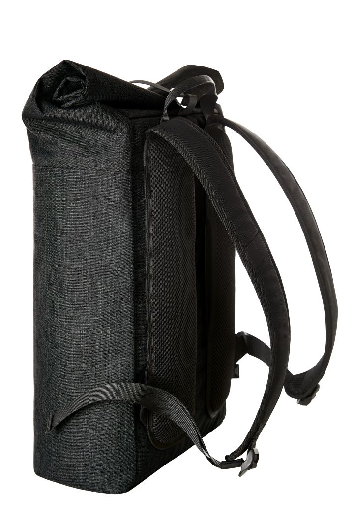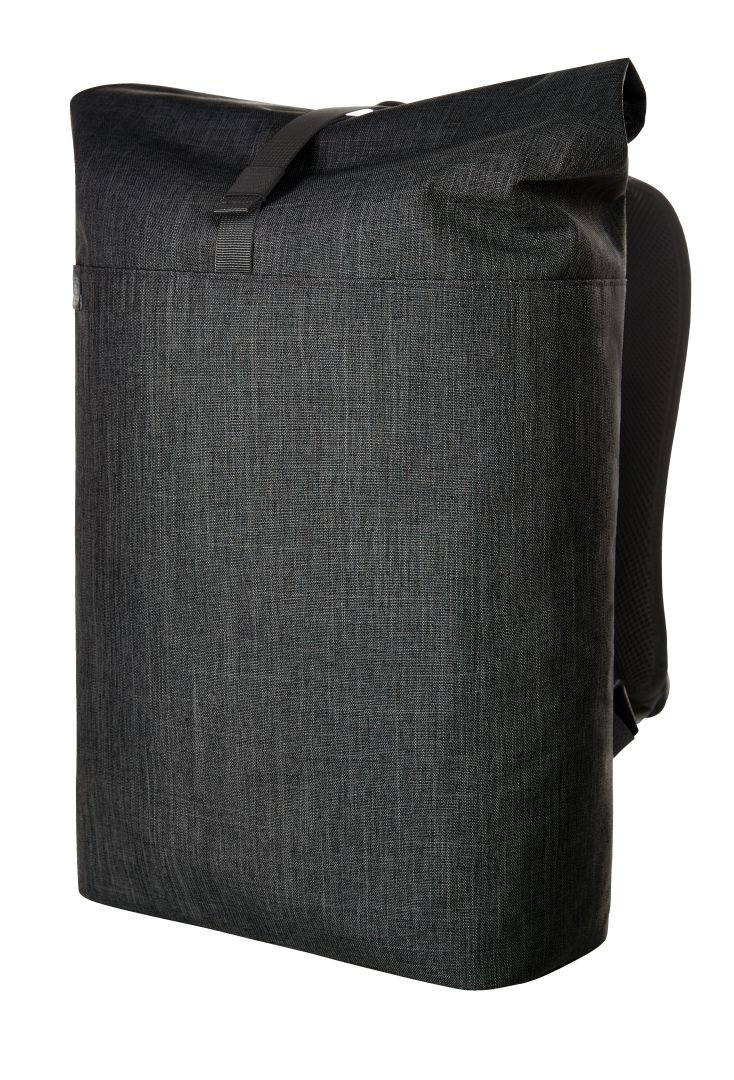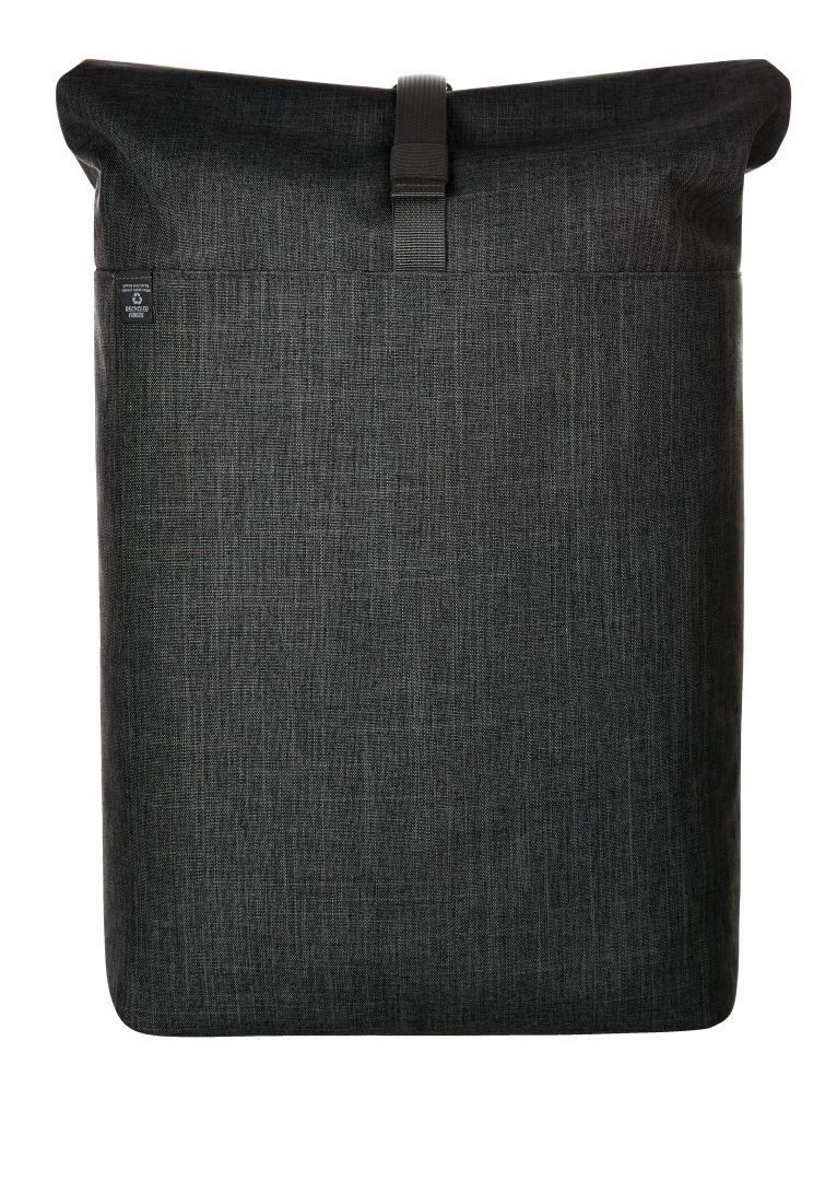 urbaner Rucksack mit Magnet-  und Wickelverschluss; geräumiges Hauptfach mit gepolstertem Notebookfach; rPET Obermaterial; rückseitige Reißverschlusstasche; aufwändig gepolsterter Rücken mit verstecktem Reißverschlussfach; gepolsterter Boden; längenverstellbare gepolsterte Schultergurte mit Gummischlaufen zum Befestigen von z.B. Sonnenbrille; Handgriff