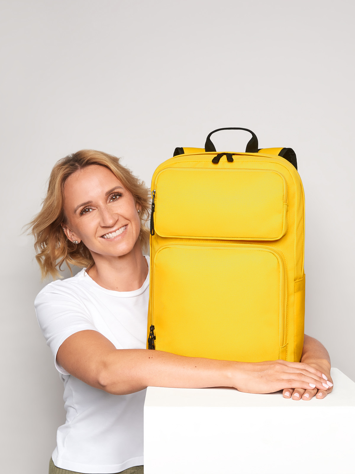 Gerader Schnitt. Junge Farben. Schöne Funktionen. Recyceltes Material. Der Notebook-Rucksack FELLOW passt in Uni, Büro, Freizeit und zu allen, die urban und modisch unterwegs sind. Ein Hingucker sind die zwei aufgesetzten Vortaschen, die für einen geometrischen Cargo-Style sorgen. Neben der feinen Ästhetik bietet er knallharte Funktion mit gepolstertem Rücken, verstellbaren Brust- und Schultergurten, flachen Seitenfächern und 15 Zoll Notebookfach. Das Polyester-Gewebe des Oberstoffes ist aus recycelten PET-Flaschen gemacht und dabei so robust und schick, wie man es sich für seinen Alltag nur wünschen kann.