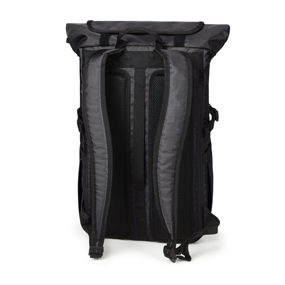 vielseitiger Rucksack mit innovativer Volumenerweiterung; rPET-Obermaterial; geräumiges Hauptfach mit Reißverschluss; flaches Einsteckfach innen; große Reißverschluss-Vortasche; funktionales Schlaufenband mit Elastikkordel; zwei seitliche Einsteckfächer für z.B. Trinkflaschen; Fixiergurte; rückseitig separat zugängliches Notebookfach mit Veloursfutter; gepolstertes Tragesystem; rückseitig verstecke Reißverschluss-Tasche; gepolsterter Boden; Handgriffe auf der Rückseite auch als Befestigungsschlaufe für Trolley-Gestänge nutzbar; Tragegriff