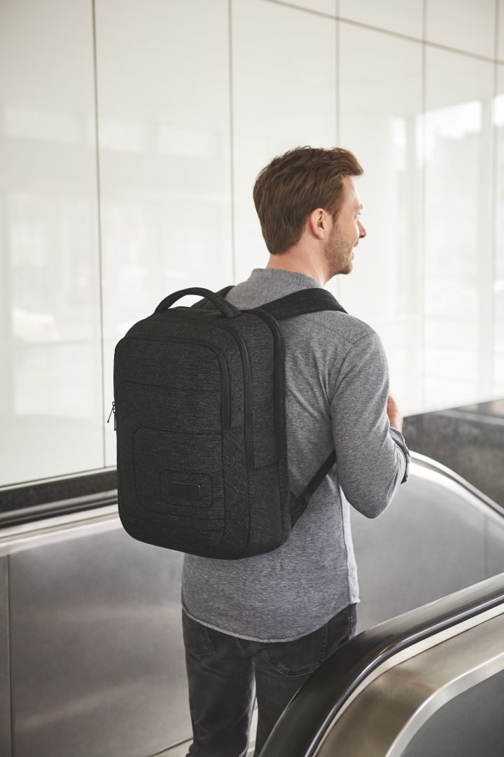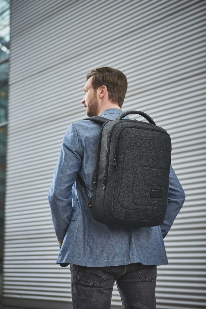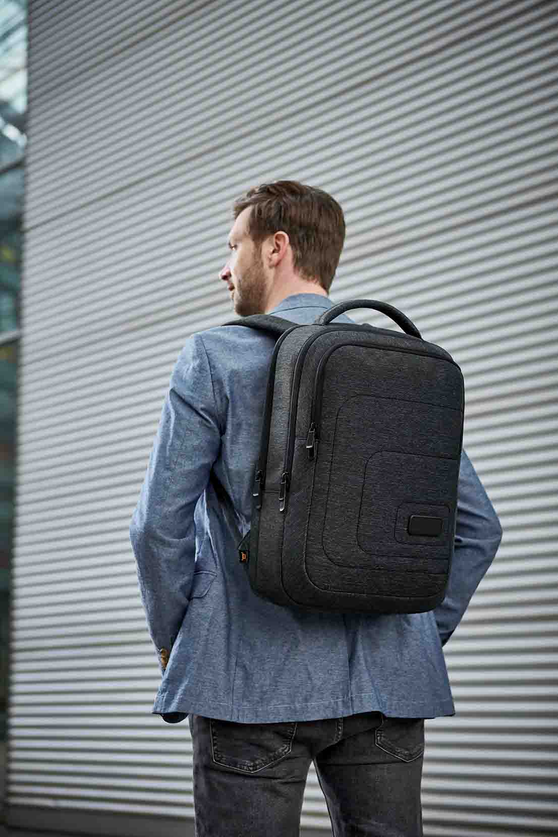 Zum Beispiel den Notebook Rucksack FRAME. Er bietet besonders hohen Tragekomfort. Dafür sorgen die Polster an Rücken und Träger. Packen Sie ihn also gerne voll: mit Bürounterlagen, Notebook und allem, was Sie sonst noch für den Tag oder eine kurze Dienstreise brauchen. Praktisch: Das Laptop kommt in das separate Fach hinten, da geht garantiert nichts durcheinander. Und ein Rückenfach lässt sich flugs zur Trolleyhalterung umfunktionieren. Für die Veredelung ist der Notebook Rucksack übrigens mit HALFAR FAST LANE® ausgestattet – mit dieser Veredelungsart geht alles ganz fix.