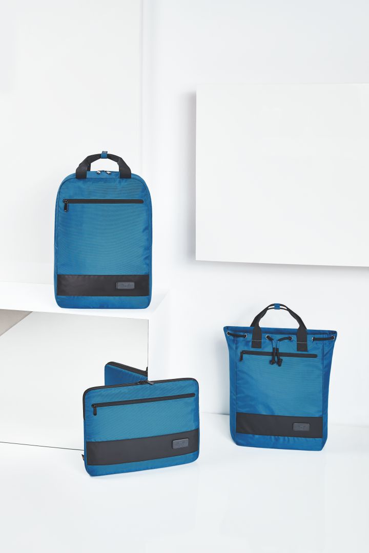 Es gibt zwei Details, die diesen jungen Rucksack auf den ersten Blick ausmachen: Zum einen der aufgesetzte schwarze Streifen, der für einen markanten Kontrast auf den entsprechenden Farben sorgt. Zum anderen die zwei Handgriffe, die nicht nur eine zusätzliche Trageoption bieten, sondern dem Rucksack auch eine charmante Optik verleihen. Sie werden per farblich abgestimmter Druckknopfmanschette zusammengehalten, ein kleiner, aber feiner gestalterischer Clou. Der Schnitt des Rucksack STAGE ist modern kastig und lässt vorne viel Raum für eine Veredelung oder für die pure Wirkung der Farbe. Innen sorgen Notebookfach, Einsteckfächer, Stiftschlaufen und mehr für einen aufgeräumten Eindruck.