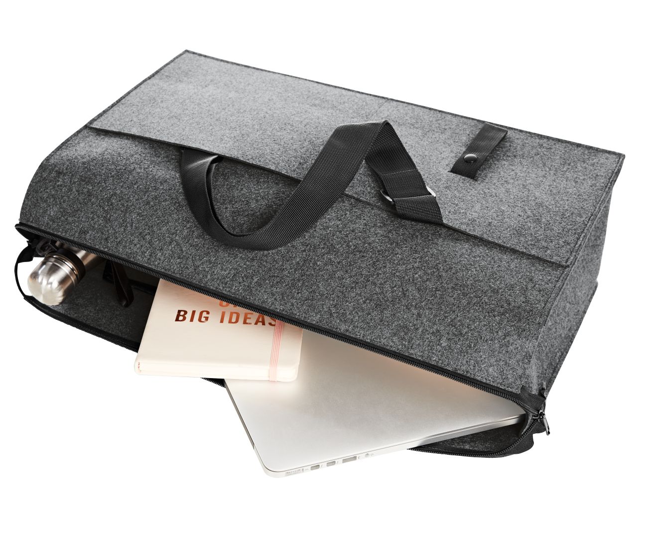 Stolz präsentieren wir: unser Riesen Organisationstalent fürs mobile Arbeiten. Aus wunderbar warmem und nachhaltigem Filz aus Recycelmaterial. Er packt alles ein, was Sie zum Schreibtischarbeiten brauchen und lässt sich mit einem Reißverschluss verschließen. Auch wirklich breiten und großen Tastaturen, Tablets und Laptops bietet er Platz. Es darf noch etwas mehr sein? Tatsächlich denkt der ModernClassic Filz-Organizer in XL auch über den Schreibtischrand hinaus. Mit extra Seitenfächern für Thermoskanne, Kaffeebecher und einem Ausschnitt innen, eigens für Visitenkarten. Und falls Sie den Weg zum nächsten Meeting oder ins Büro mit dem Auto zurücklegen, wird er dank Anschnallfunktion zum smarten Beifahrer.