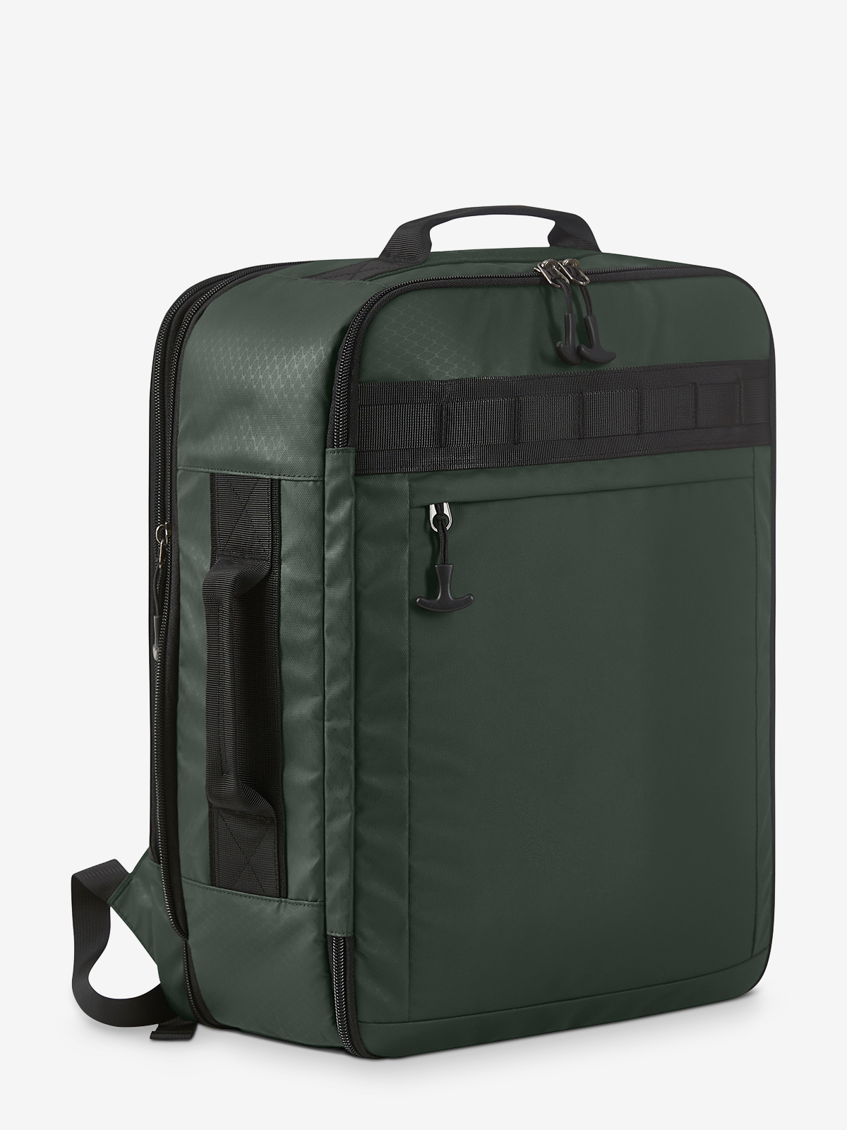 geräumiger Business-Rucksack; große Reißverschluss-Vortasche und Schlaufenband; seitliches Einsteckfach; zwei Handgriffe; großes, gepolstertes Gepäck-Hauptfach mit Netzdeckel, 2-Wege-Reißverschluss sowie seitlichem Netz-Einsteckfach und Schlüsselband; zwei Reißverschluss-Netztaschen im Hauptfachdeckel; Volumenerweiterung Hauptfach; separat zugängliches 2-Wege-Reißverschlussfach für Arbeitsausstattung: Tablet- und Notebookfach, beide mit Veloursfutter und elastische Fixierschlaufe; Netzfach; Einsteckfach geeignet für A4-Unterlagen; Stiftschlaufe; gut gepolstertes Rückentragesystem mit verstellbarem Brustgurt; rückseitig Befestigungsschlaufe für Trolley-Gestänge