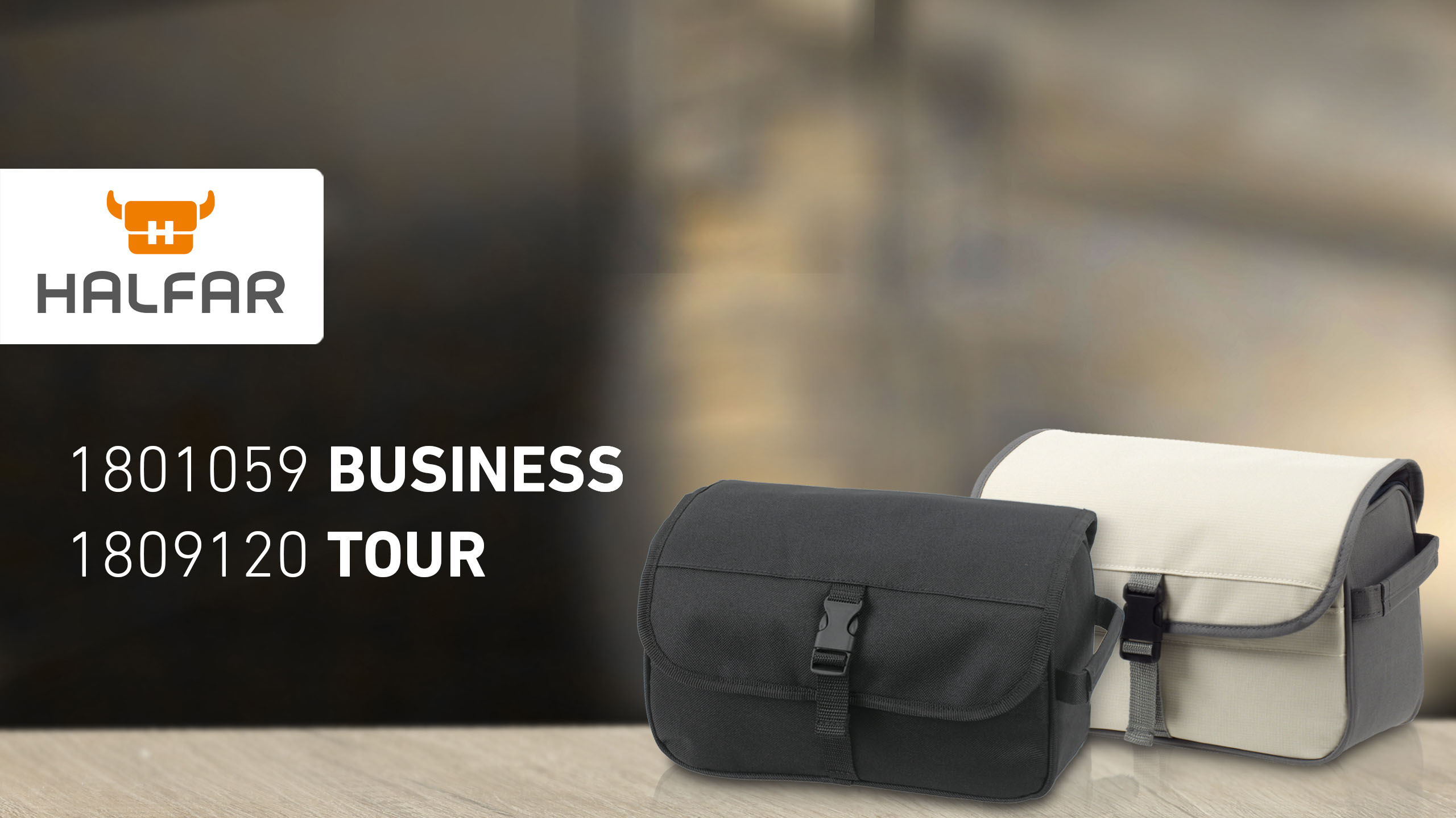Wer möchte das nicht: selbst nach einer langen Reise gepflegt und erfrischt ankommen. HALFAR® hat dafür einige schöne Lösungen in Taschenform entwickelt. Mit einem aufwändigeren Innenleben wartet das Reisenecessaire BUSINESS auf. Mit einem gepolsterten Hauptfach und zwei Reißverschluss-Einsteckfächern hat es viel Platz für Fläschchen, Tuben und Tiegelchen. Praktisch: das kleine Schwarze von HALFAR® kann man aufstellen oder auch aufhängen. Zusammengeklappt zeigt sich das Reisenecessaires BUSINESS mit aufgedrucktem oder gesticktem Logo von seiner besten Seite.