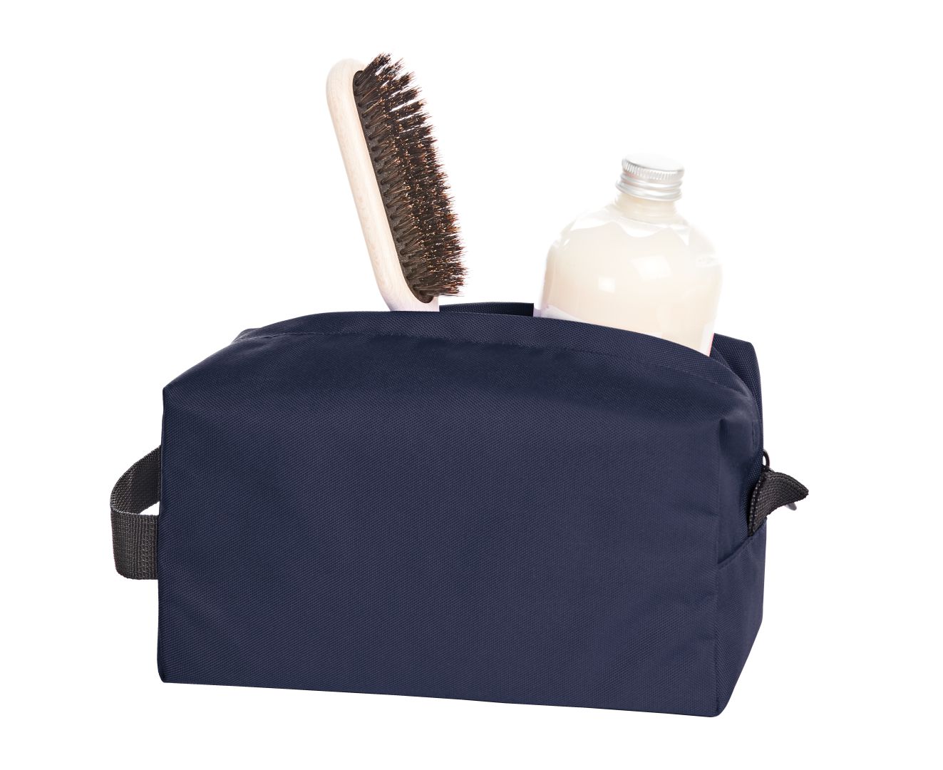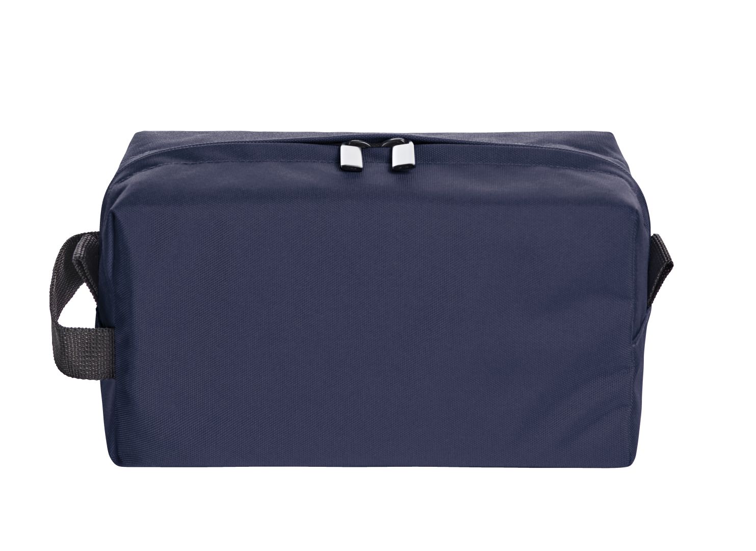 praktische rechteckige Reißverschlusstasche für viele Einsatzbereiche; RPET-Obermaterial; großes 2-Wege-Reißverschluss Hauptfach; Netzfach innen; seitliche Grifflaschen zum leichten Öffnen; Handgriff
