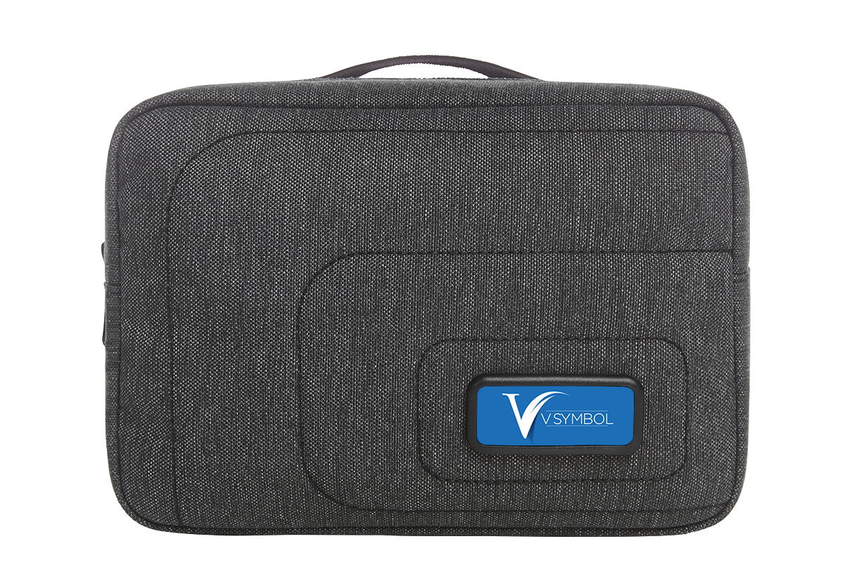 funktionale, gepolsterte Reißverschluss-Tasche mit aufwändig gesteppter Front und HFL® Träger für Ihr Logo; Hauptfach mit flachem Reißverschluss-Netzfach und zwei Netzeinsteckfächern; rückseitig flaches Reißverschluss-Fach; Handgriff