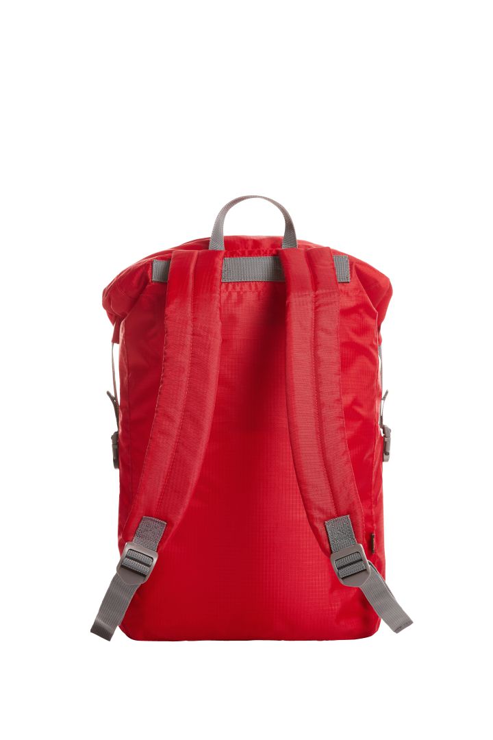 leichter, wasserabweisender Rucksack mit Wickelverschluss und verschweißten Nähten; seitliche Steckschnallen; Reißverschluss-Innentasche; Reißverschluss-Vortasche; längenverstellbare, gepolsterte Rucksackträger; Handgriff