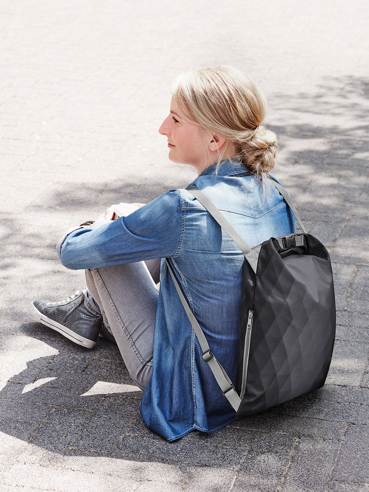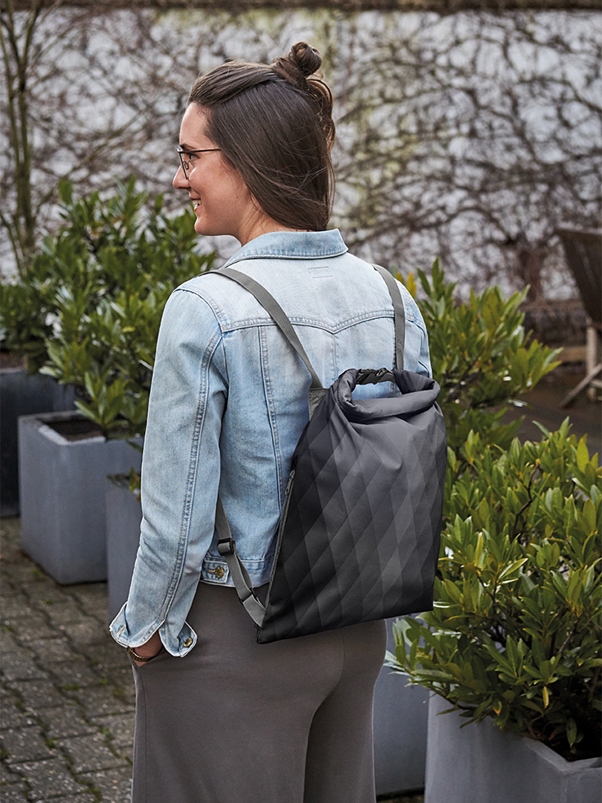 Ein kleines Juwel für Trendsetter: der Rucksack DIAMOND. Durch seinen raffinierten Aufdruck wirkt er geschliffen schön, fast wie ein Diamant. Und das ganz ohne Glanz und Glimmer, sondern mit einer coolen technisch anmutenden Rauten-Optik. Das macht den DIAMOND zum best friend für alle Trendsetter- und -setterinnen. Ein Logo-Aufdruck erhält hier einen wahrlich noblen Rahmen. Und das Beste: Der Rucksack ist beidseitig tragbar. So sind sogar zwei verschiedene Veredelungen auf Vorder- und Rückseite möglich. Brillant.