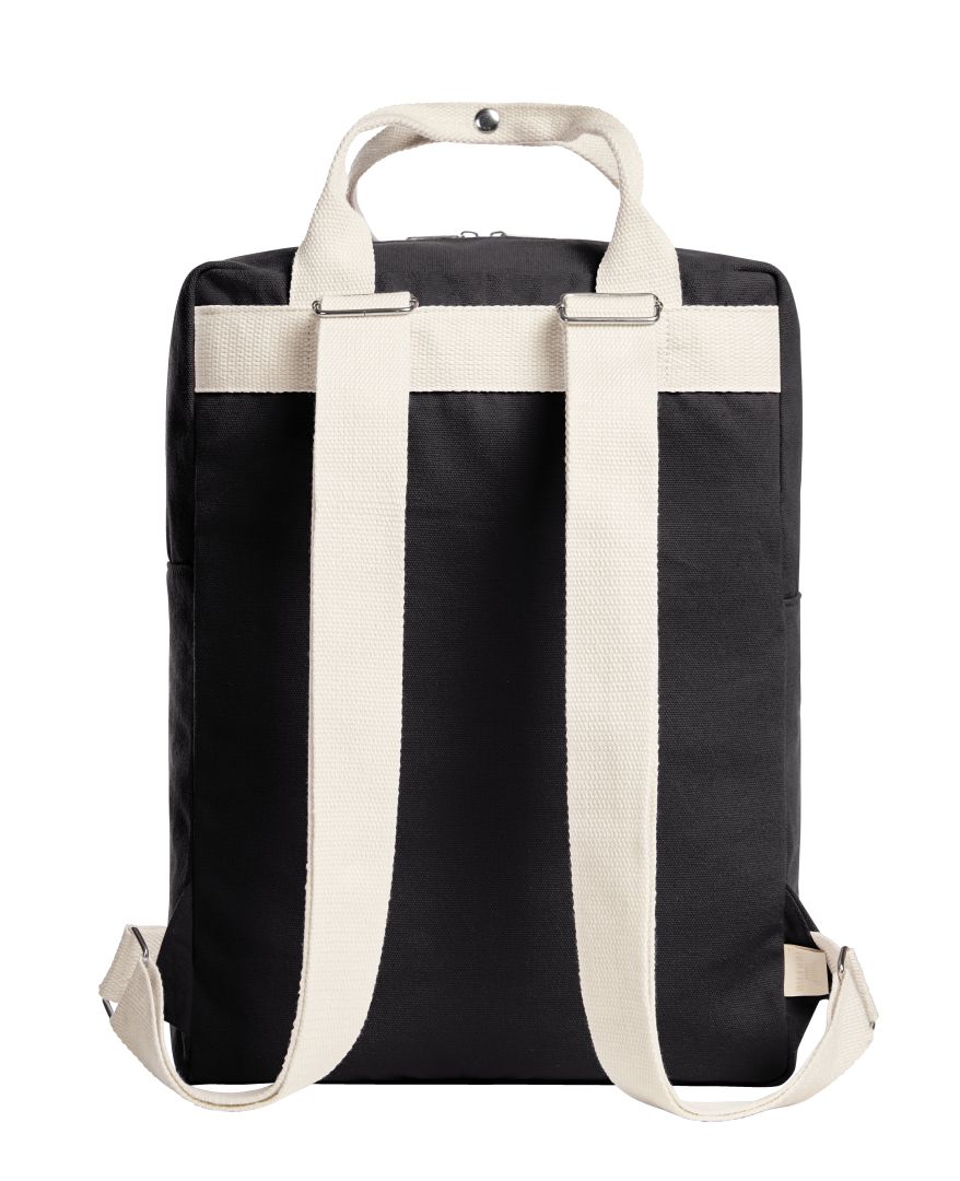 Schnitt und Form dieses Baumwoll-Rucksacks sind legendär und äußerst beliebt. Der geradlinige Schnitt zeigt Kante, während die beiden Handgriffe den Rucksack LIKE sprichwörtlich abrunden. Charmantes Detail: Sie lassen sich per Metall-Druckknopf verbinden. Auch die Schultergurte sind großzügig mit einer Metallschnalle zum Verstellen ausgestattet. Ein weiteres Highlight dieser jungen Tasche mit dem Zeug zum Klassiker ist die Vortasche: Durch ihre extra Tiefe kann sie ordentlich etwas verstauen und ist per Klett-Überschlag geschlossen. Die Haupttasche hat einen 2-Wege Reißverschluss und ebenfalls viel Platz. Insgesamt ein Federgewicht, das mit seinen naturfarbenen Gurten schöne Akzente setzt.