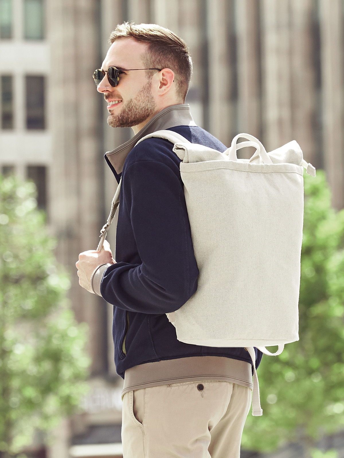 großes Reißverschluss-Hauptfach mit zusätzlichem Rollverschluss; großes, flaches Einsteckfach; Reißverschluss-Innentasche; aufwendig gesteppter und gepolsterter Rücken; gepolsterter Boden; rückseitiges Reißverschlussfach; gepolsterte, längenverstellbare Schultergurte; wertige Metallaccessoires