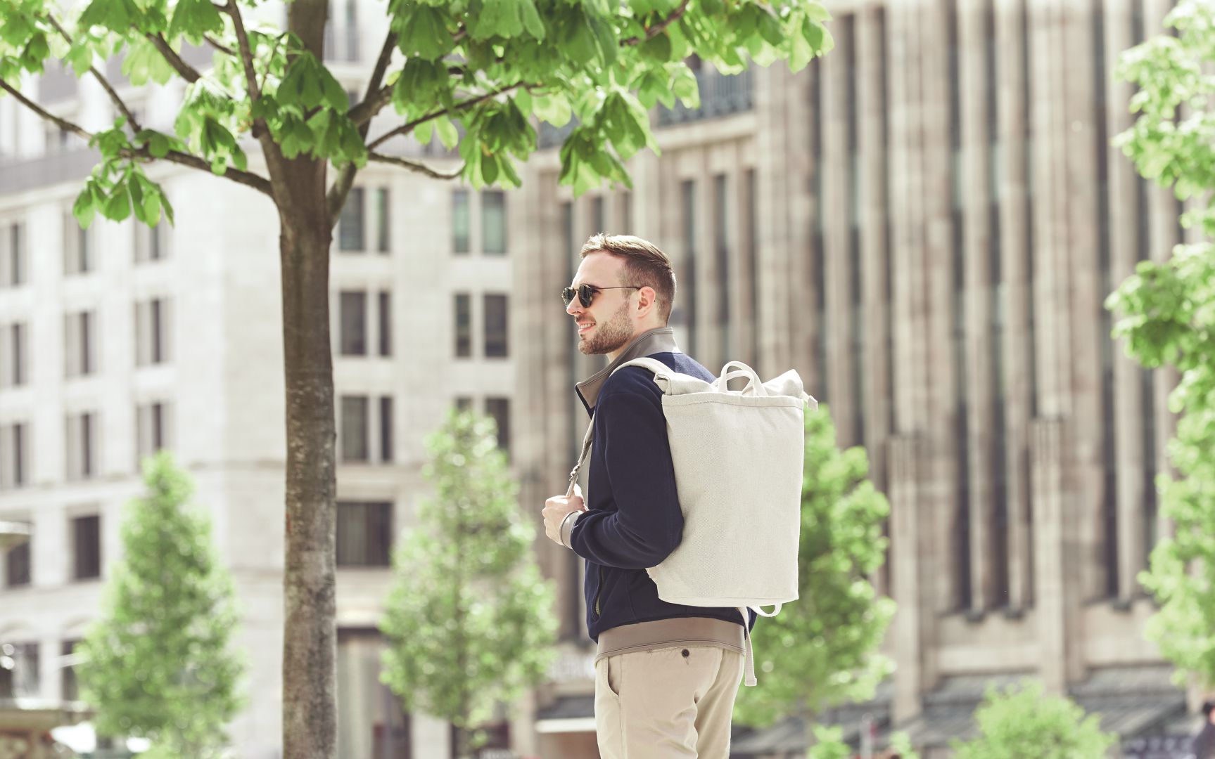 Bucket Bag ist eine der klassischen und gerade angesagten Taschenformen: Es heißt, dass die Tasche wie ein Korb oder Eimer von oben zu befüllen ist. Praktisch für unterwegs. Doch der LOOM Rucksack hat seinen Form-Vorbildern einiges voraus: zum einen besteht er aus einem angenehmen Baumwoll-Polyester Mix in einem natürlich schönen Sandton. Zum anderen bietet er besondere Möglichkeiten für das Tragen und Verschließen. Da wären etwa zwei Handgriffe, gepolsterte Schultergurte, gepolstertes Rückenteil, Hauptfach mit Reißverschluss und Schnalle für die Wickelfunktion... was will man mehr?