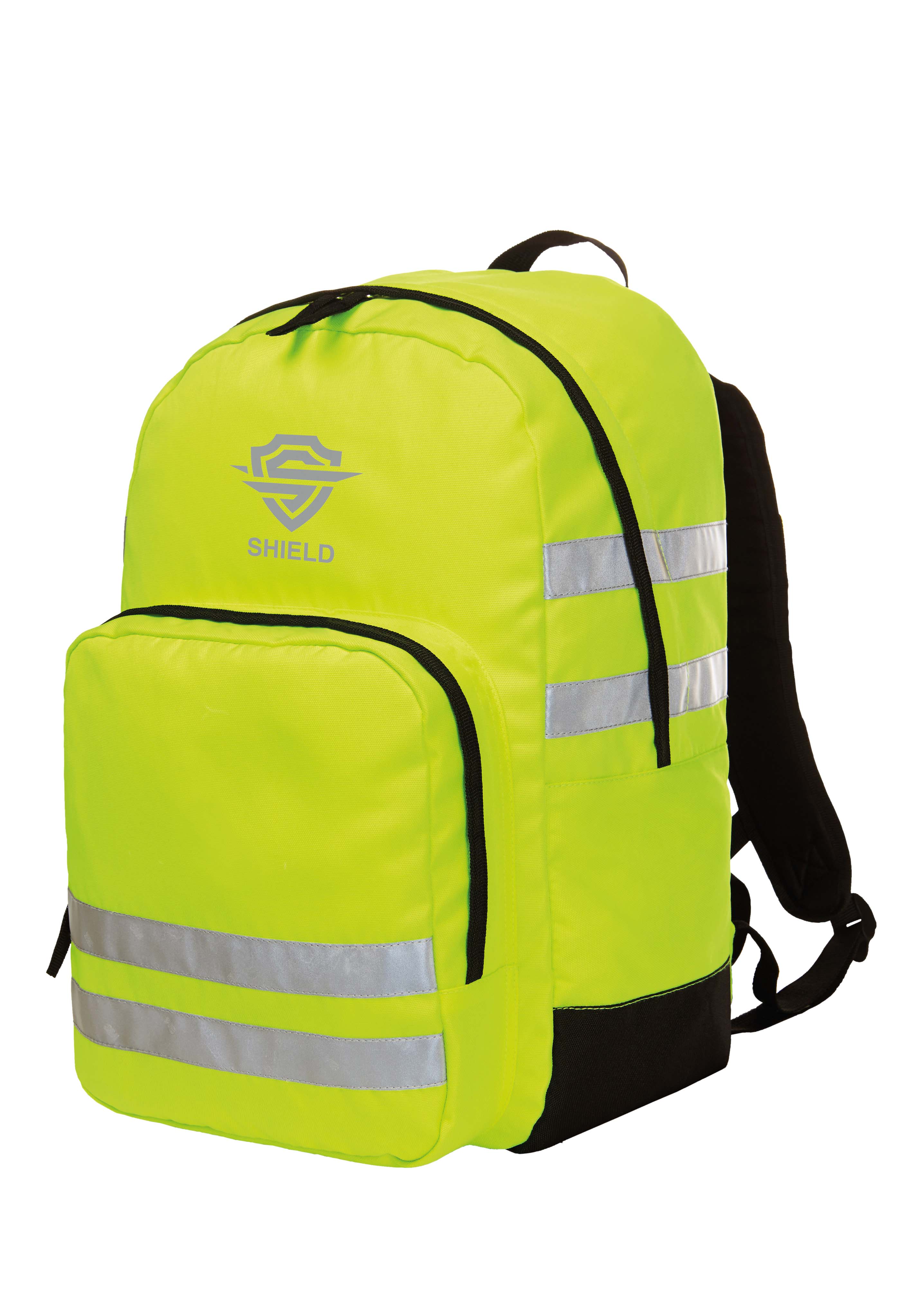 großes Hauptfach mit 2-Wege-Reißverschluss und Regenpatte; innen Netzfach, gepolstertes Einsteckfach; Kopfhörerausgang; Vortasche mit 2-Wege-Reißverschluss, Regenpatte und Organizer; Handgriff; gepolsterter Rücken und Träger; höhenverstellbarer Brustgurt; leuchtend neongelbes Hauptmaterial mit 3M™ Scotchlite™ Reflexstreifen