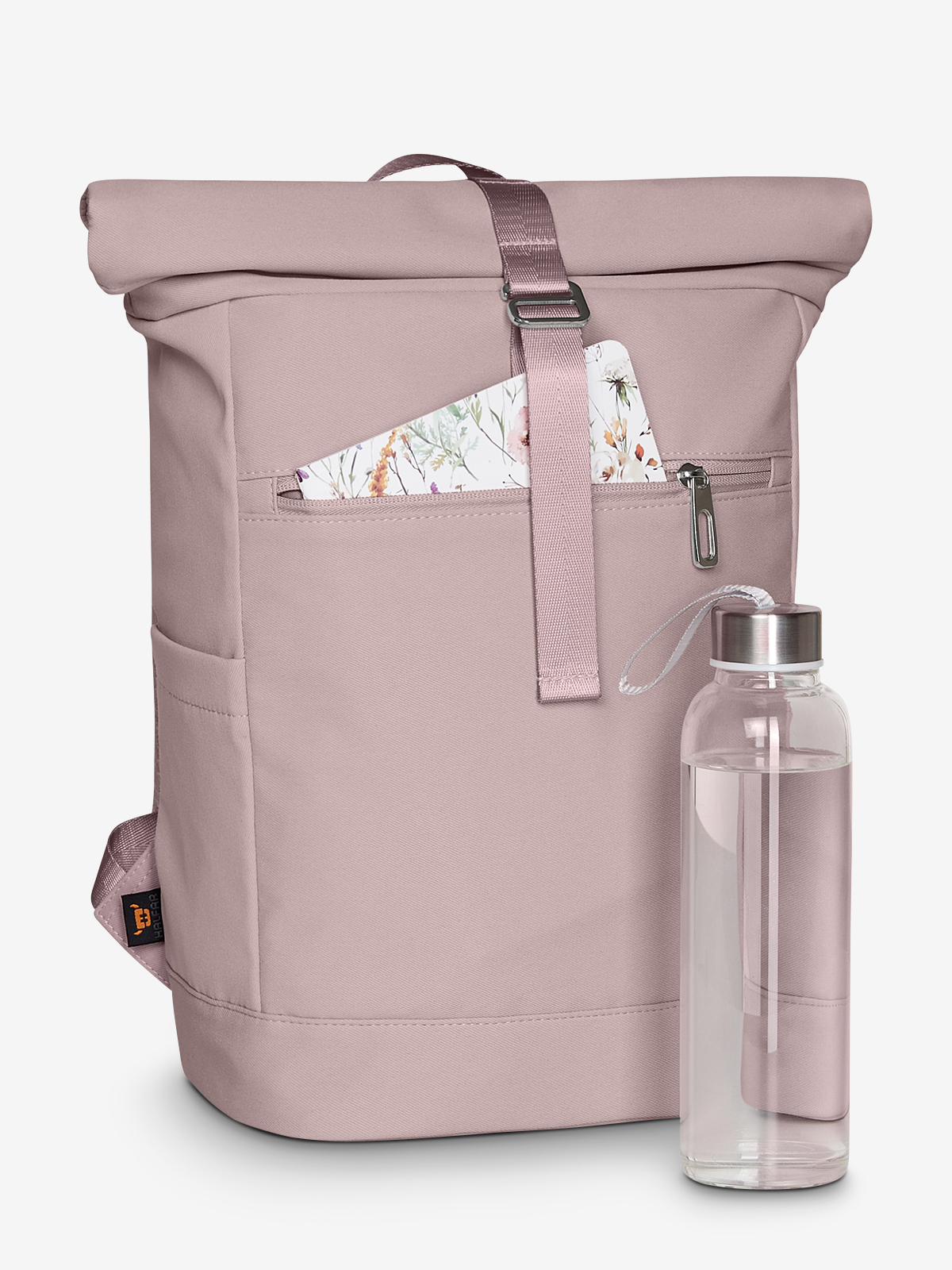 modischer Rolltop-Rucksack; Reißverschluss-Hauptfach mit verstellbarem Verschlusssystem; Schlaufenband auf dem Deckel; wertiger Metallaccessoires; gepolstertes Gerätefach; Reißverschluss-Vortasche; zwei seitliche Einsteckfächer; gepolsterter Boden; gepolstertes Tragesystem; rückseitige Befestigungsschlaufe für Trolley-Gestänge; Handgriff