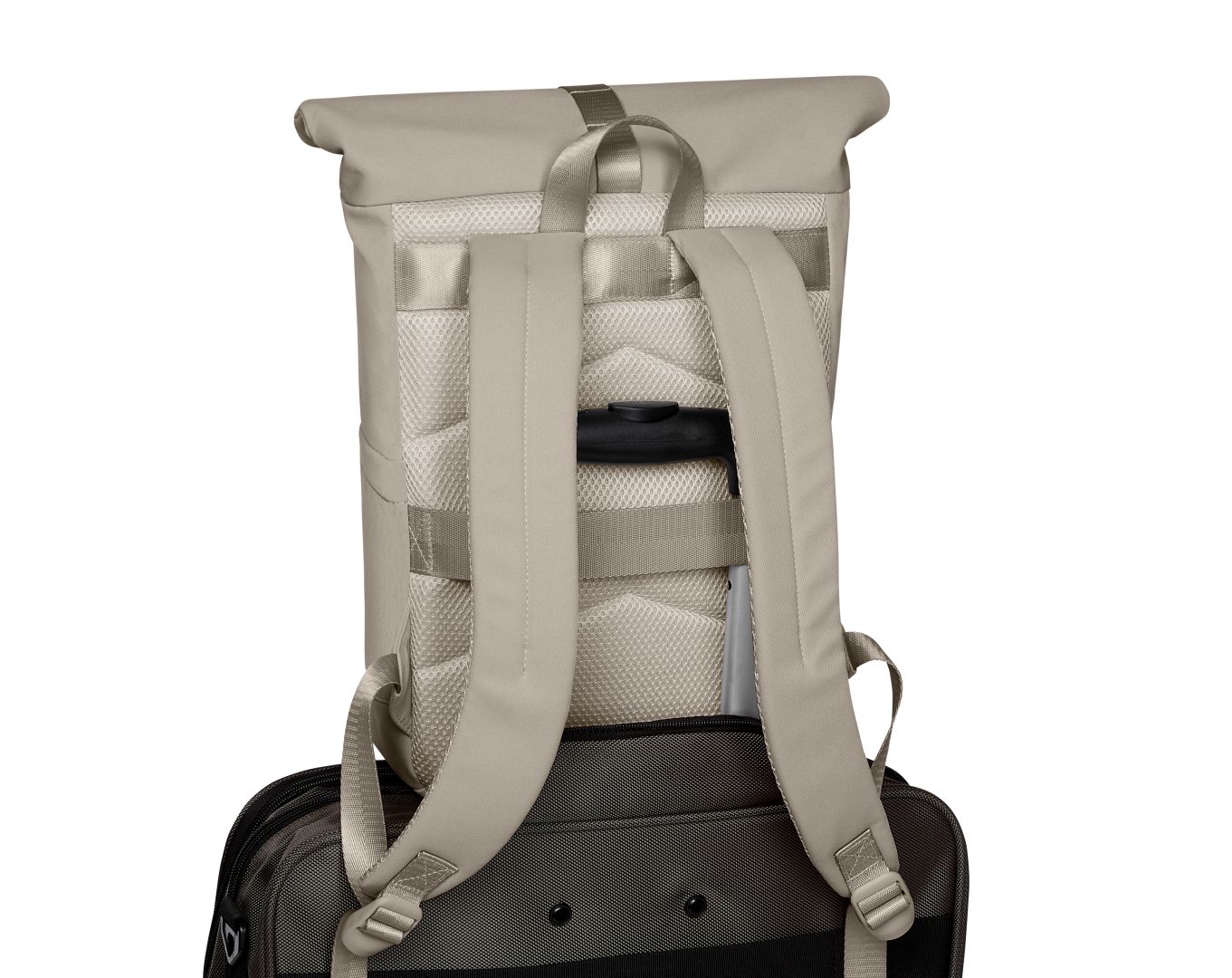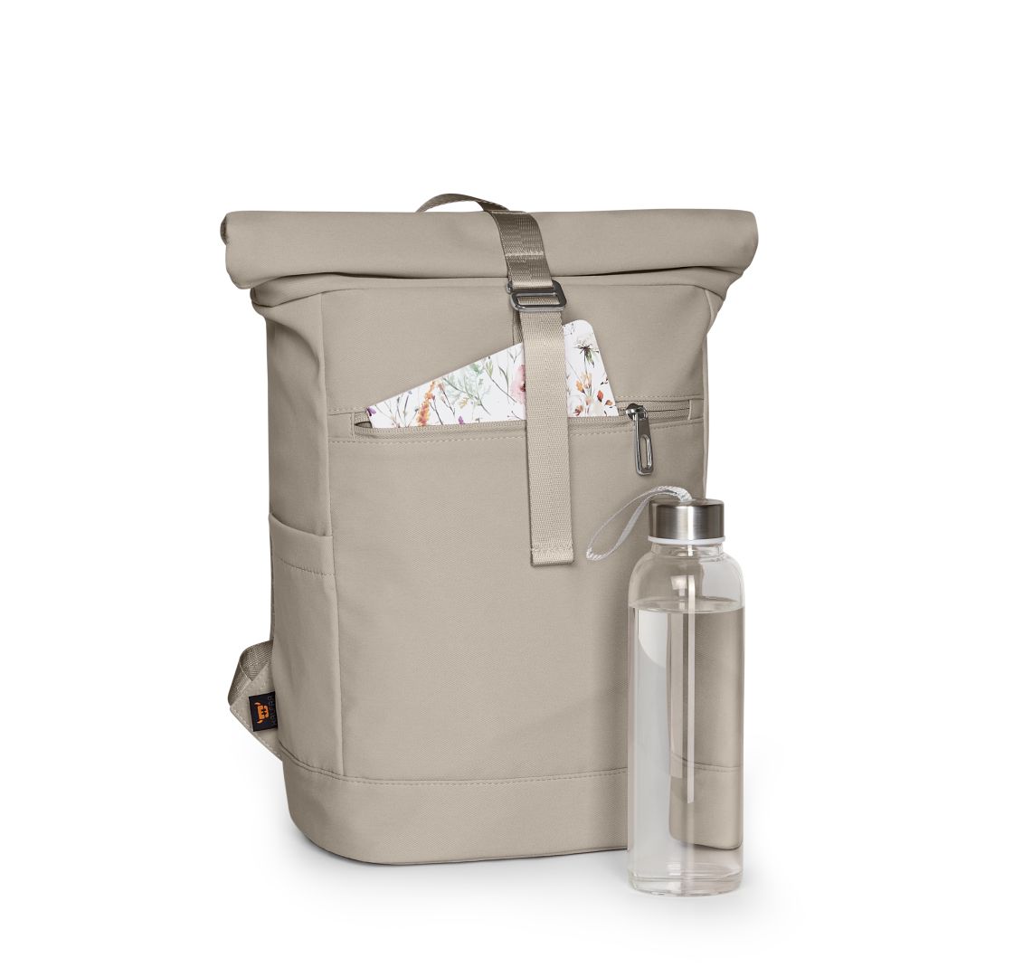 Klein ist relativ. Dieser Rucksack wird nur im Vergleich zu seinem Serienpartner zur S-Version. Allein betrachtet ist er nicht wirklich small, sondern ein vollwertiger Rucksack, der für viele Alltagssituationen genau richtig ist. Zum Lieblingsbegleiter macht ihn als erstes sein sehr gefälliges textiles Material, das ein wahrer Handschmeichler ist. Durch die Ton-in-Ton Farbgebung wird er außerdem zur Augenweide. Hier passt farblich einfach alles zusammen, von Reißverschlüssen, über Gurte bis zur Trolleyschlaufe und zum Netzgewebe am Rücken. Nur innen glänzt zur besseren Orientierung helles Kontrastfutter. Dort findet sich auch ein gepolstertes Fach, groß genug für kleine Laptops oder Tablets. Und wenn es doch einmal Größeres zu transportieren gibt, hat der STAR S nach oben noch genug Kapazitäten. Ansonsten hält die schöne Metallschließe alles aufs gewünschte Packmaß zusammen.