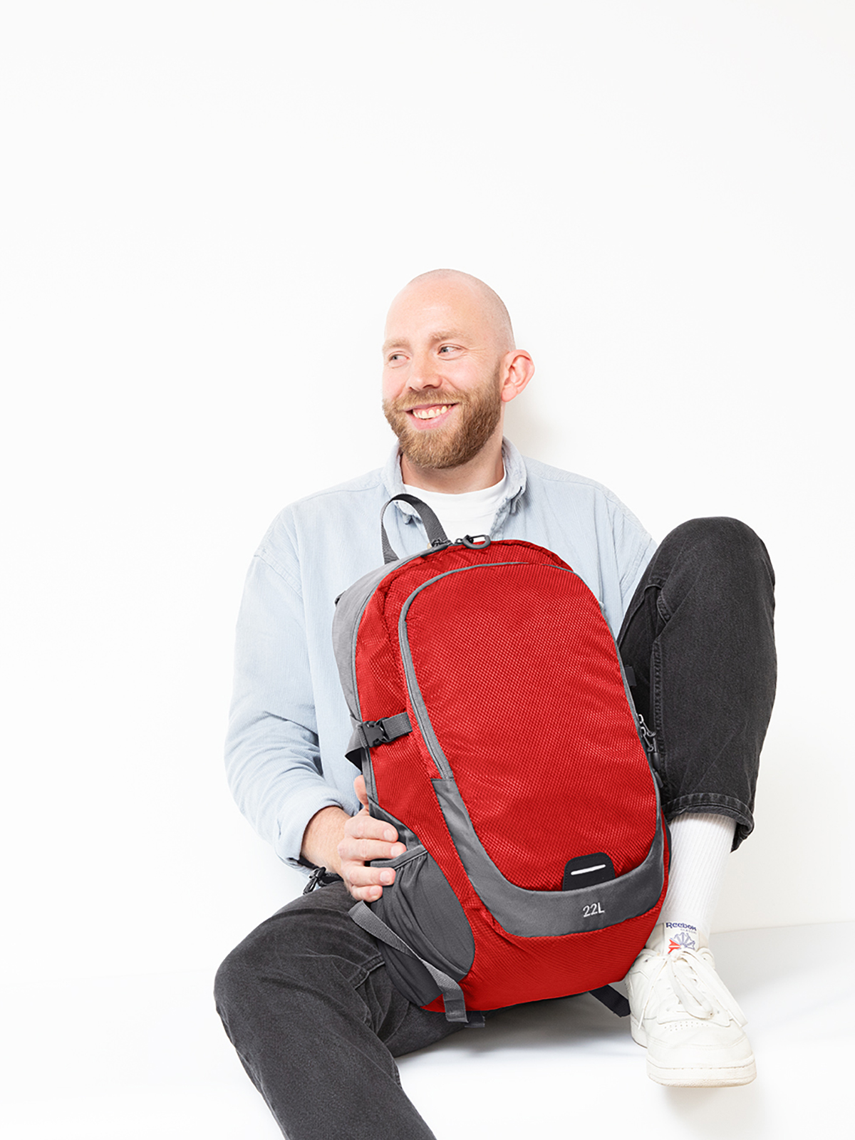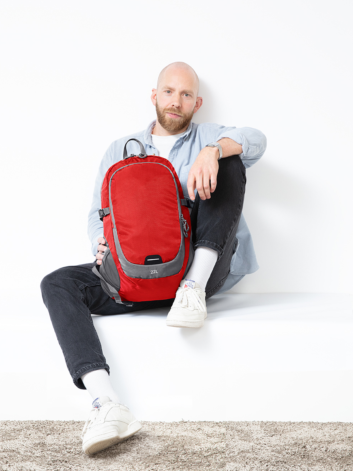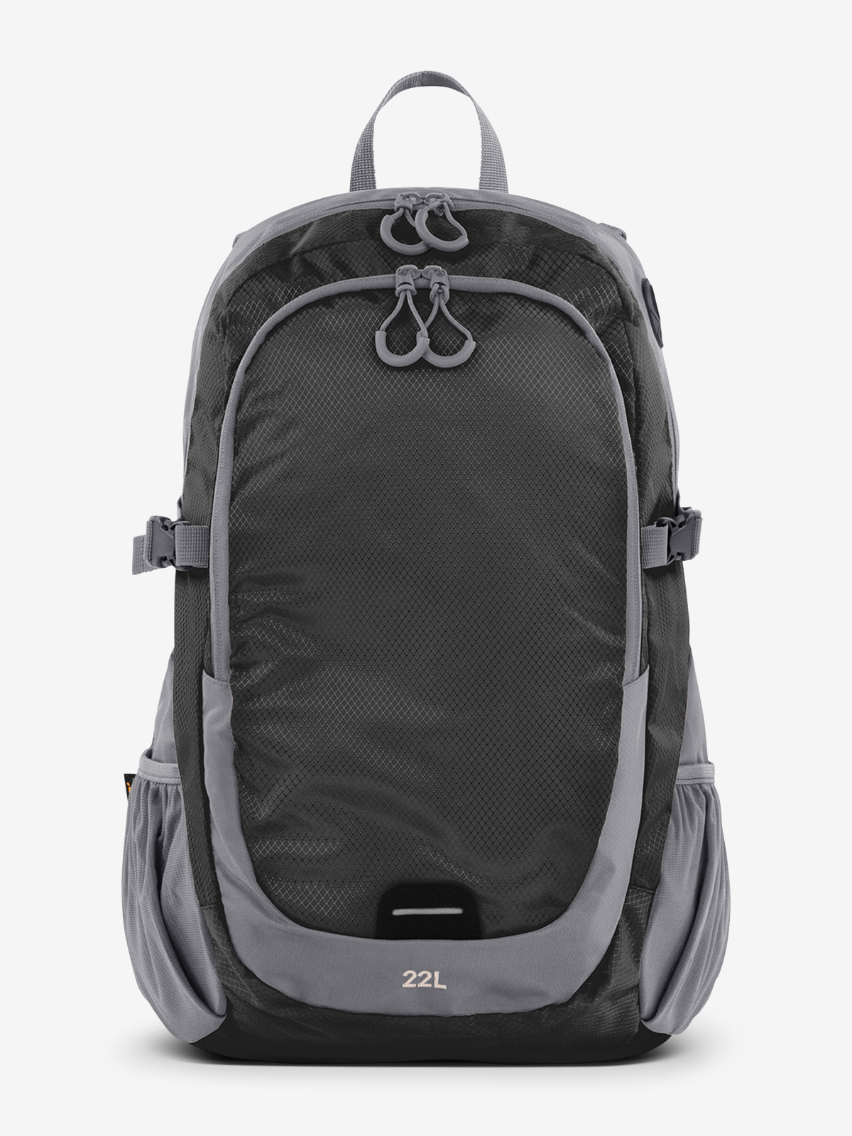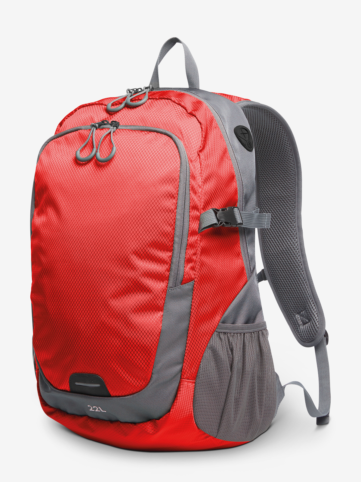 geräumiges Hauptfach mit 2-Wege-Reißverschluss und Einsteckfach innen; seitliche Zurrgurte; Reißverschluss-Vortasche mit zwei Einsteckfächern; Reflektor-Streifen vorne; seitliche Netzfächer; Kopfhörerausgang; gepolsterte Schultergurte mit höhenverstellbarem, dehnbarem Brustgurt; gepolsterter Rücken