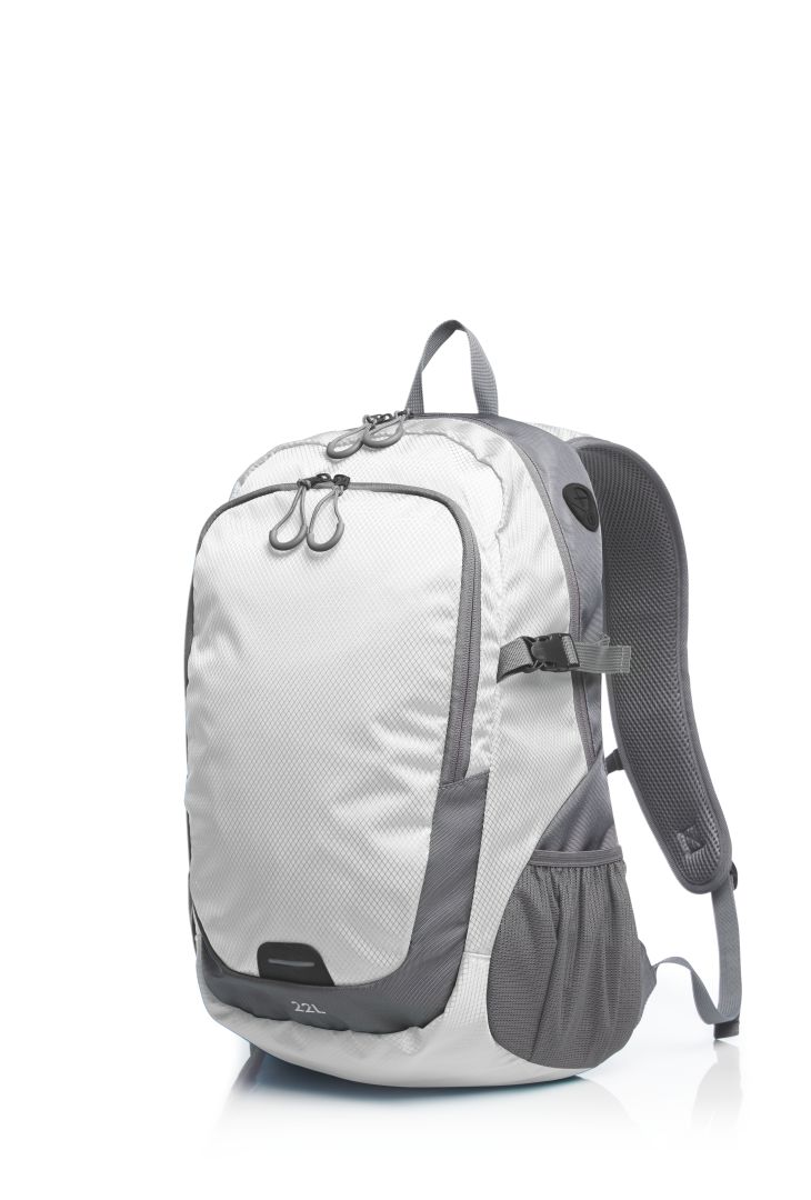 geräumiges Hauptfach mit 2-Wege-Reißverschluss und Einsteckfach innen; seitliche Zurrgurte; Reißverschluss-Vortasche mit zwei Einsteckfächern; Reflektor-Streifen vorne; seitliche Netzfächer; Kopfhörerausgang; gepolsterte Schultergurte mit höhenverstellbarem, dehnbarem Brustgurt; gepolsterter Rücken