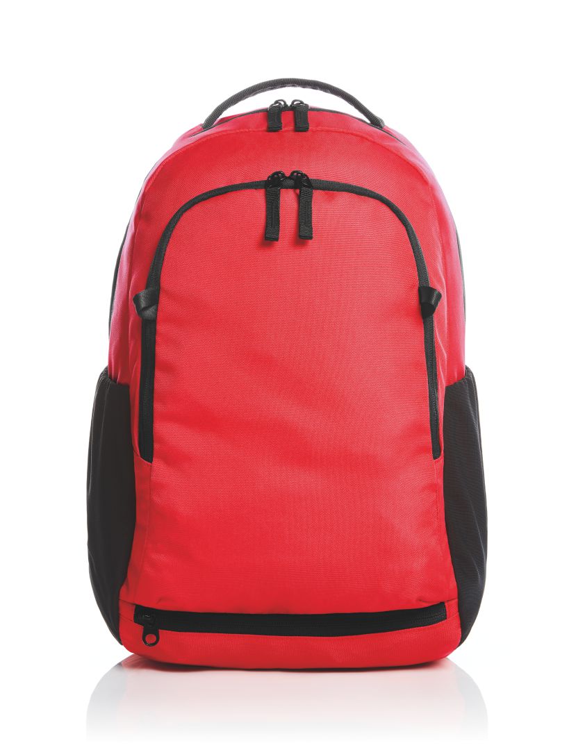 klassisches Multitalent für die Freizeit; großes Hauptfach mit 2-Wege-Reißverschluss; flaches Einsteckfach; Volumenerweiterung; 2-Wege-Reißverschluss-Vortasche; Bodenfach mit versenkbarem Netz; elastische Netzseitentaschen; zwei Handgriffe; Tragelasche; verstellbarer Brustgurt; gepolstertes, längenverstellbares Tragesystem