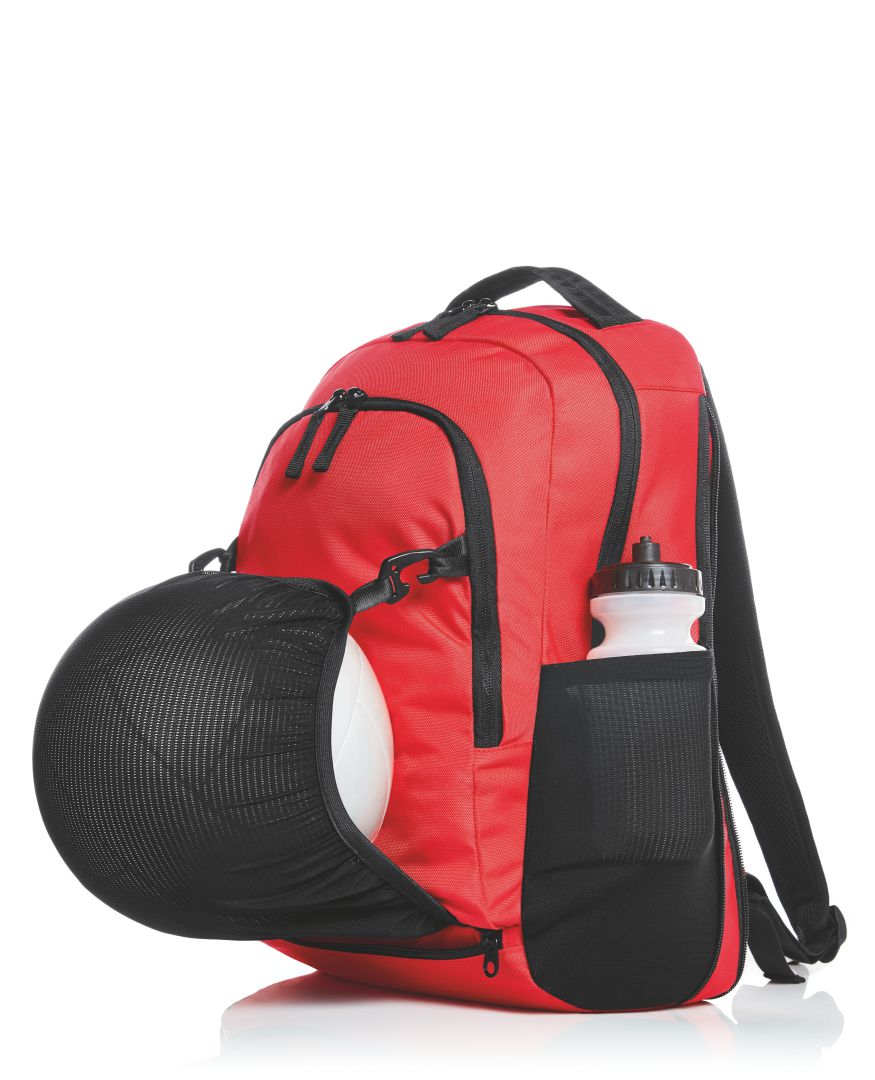 Dieser Rucksack zeigt sich wirklich von jeder Seite von seiner besten Seite. Denn der sportliche TEAM bietet überall Griffe, Taschen und nützliche Features. Einen Handgriff etwa hat der Rucksack nicht nur oben, sondern auch an der Seite – praktisch, um ihn aus dem Kofferraum oder dem Gepäcknetz zu nehmen. Auch in punkto Volumen ist er ein Multitalent. Das Hauptfach lässt sich per Reißverschluss um einiges erweitern. Ein Helm oder Ball findet unter einem Netz einen Extraplatz – bei Nichtgebrauch verschwindet es einfach wieder im Bodenfach. Elastische Netz-Seitentaschen halten Trinkflaschen oder anderes griffbereit. Und das Tragesystem bietet mit Brustgurt und Polstern Komfort. Eben von vorne bis hinten begeisternd.