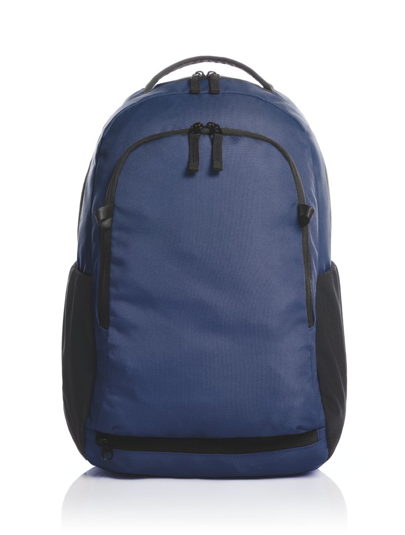 klassisches Multitalent für die Freizeit; großes Hauptfach mit 2-Wege-Reißverschluss; flaches Einsteckfach; Volumenerweiterung; 2-Wege-Reißverschluss-Vortasche; Bodenfach mit versenkbarem Netz; elastische Netzseitentaschen; zwei Handgriffe; Tragelasche; verstellbarer Brustgurt; gepolstertes, längenverstellbares Tragesystem