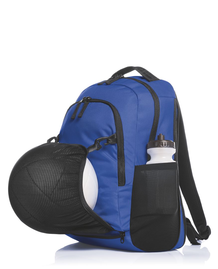 Dieser Rucksack zeigt sich wirklich von jeder Seite von seiner besten Seite. Denn der sportliche TEAM bietet überall Griffe, Taschen und nützliche Features. Einen Handgriff etwa hat der Rucksack nicht nur oben, sondern auch an der Seite – praktisch, um ihn aus dem Kofferraum oder dem Gepäcknetz zu nehmen. Auch in punkto Volumen ist er ein Multitalent. Das Hauptfach lässt sich per Reißverschluss um einiges erweitern. Ein Helm oder Ball findet unter einem Netz einen Extraplatz – bei Nichtgebrauch verschwindet es einfach wieder im Bodenfach. Elastische Netz-Seitentaschen halten Trinkflaschen oder anderes griffbereit. Und das Tragesystem bietet mit Brustgurt und Polstern Komfort. Eben von vorne bis hinten begeisternd.