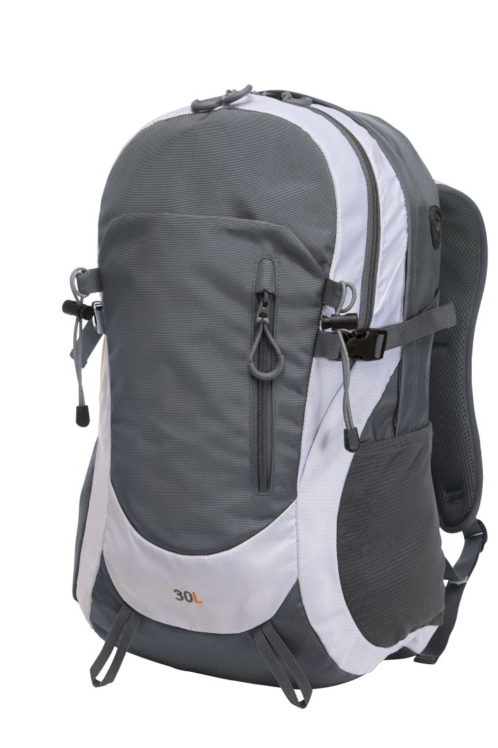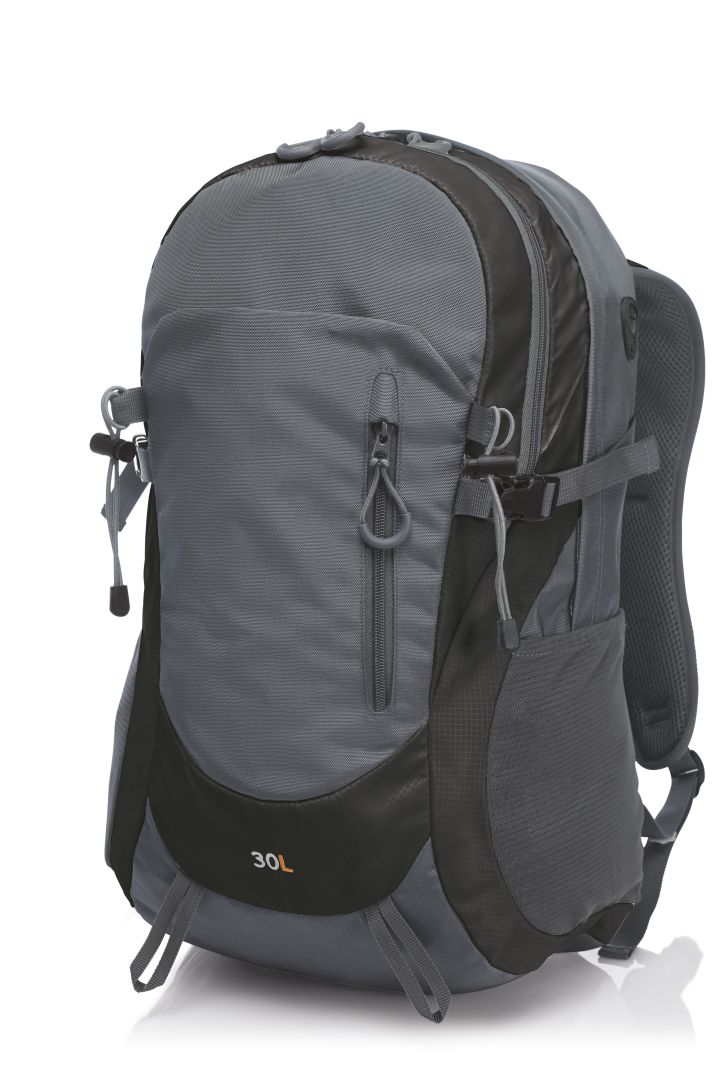 leichter, funktioneller Rucksack mit optimal gepolstertem Rücken; großes Hauptfach mit flachem Einsteckfach innen und Kopfhörerausgang; 2 Seitentaschen; Wanderstockfixierung; seitliche Zurrgurte; Bodenfach mit Regenhülle; gepolsterte Träger mit oberer und unterer Längenverstellung; gepolstertere Beckengurt mit Reißverschlusstaschen; höhenverstellbarer Brustgurt