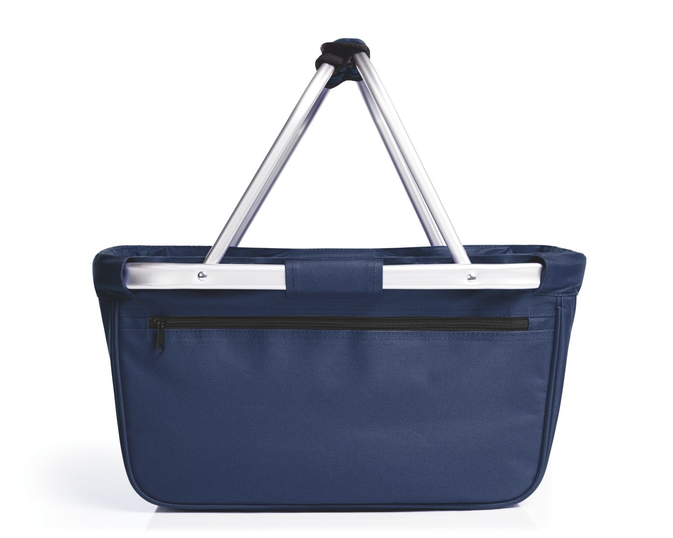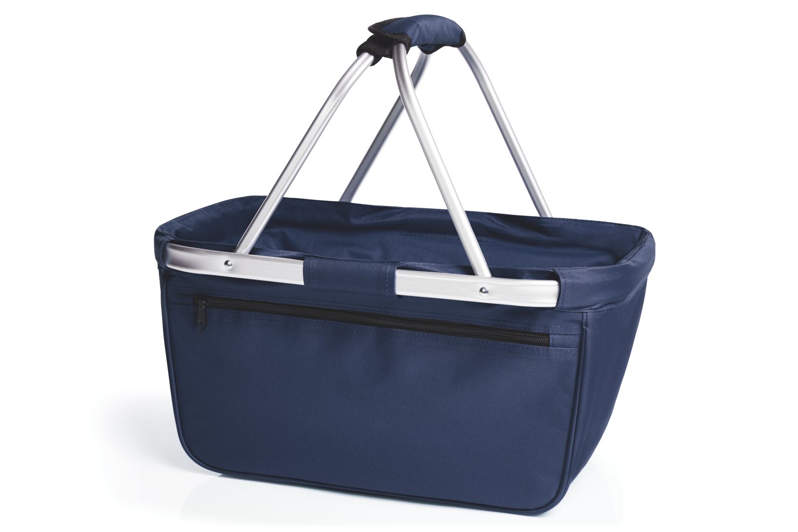 formschöner Einkaufskorb mit Alurahmen und Reißverschluss-Vortasche; faltbar